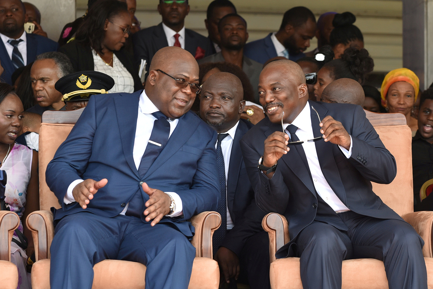 Image: Democratic Republic of Congo's outgoing President Joseph Kabila sits next to his successor Felix Tshisekedi during an inauguration ceremony whereby Tshisekedi will be sworn into office as the new president of the Democratic Republic of Congo at the Palais de la Nation in Kinshasa, Democratic Republic of Congo January 24, 2019. REUTERS/ Olivia Acland TPX IMAGES OF THE DAY