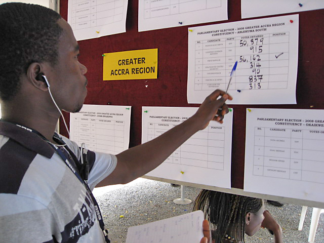 Image: The BBC's James Afedo checks the results at the international press center in Accra during Ghana's 2008 election. (Flickr/BBC World Service/Peter Lewenstein)