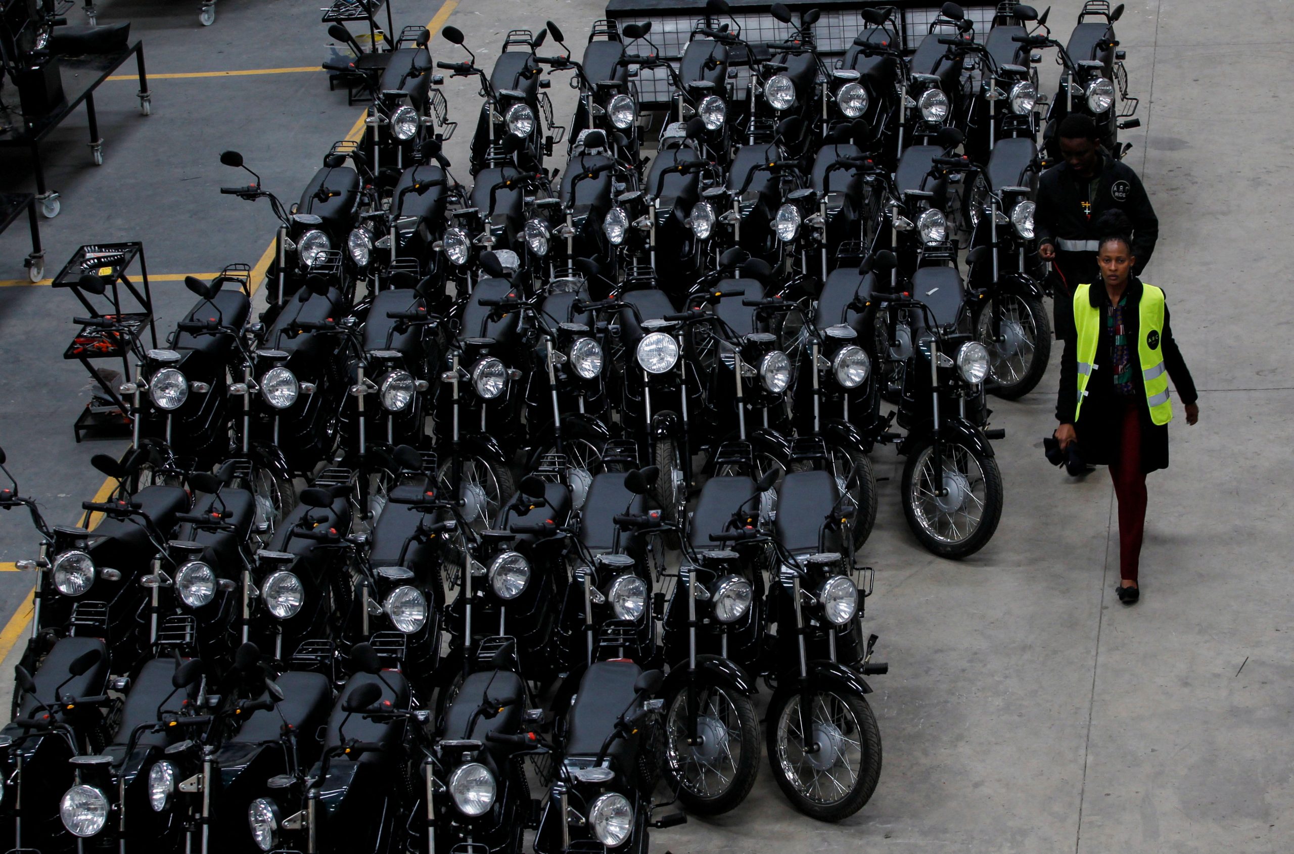 Image: A worker walks next to assembled electric motorcycles at ARC Ride's warehouse in Industrial Area, Nairobi, Kenya November 2, 2022. REUTERS/Monicah Mwangi