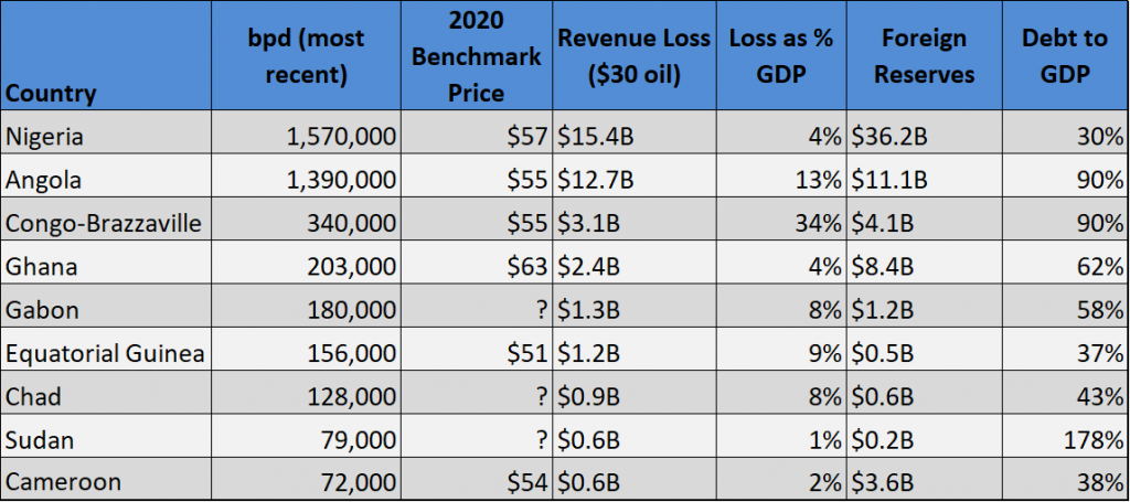 The shocks will be felt everywhere, though. Despite oil only making up 10 percent of GDP in Nigeria, the government’s budget relies on oil for 57 percent of all revenue. Oil also accounts for 94 percent of exports and a similar percent of foreign exchange earnings. Thus, government coffers will be hit harder than GDP, and as a result, public services in oil producers will be constrained, just as these countries scramble to shore up their health and education sectors in response to the virus.