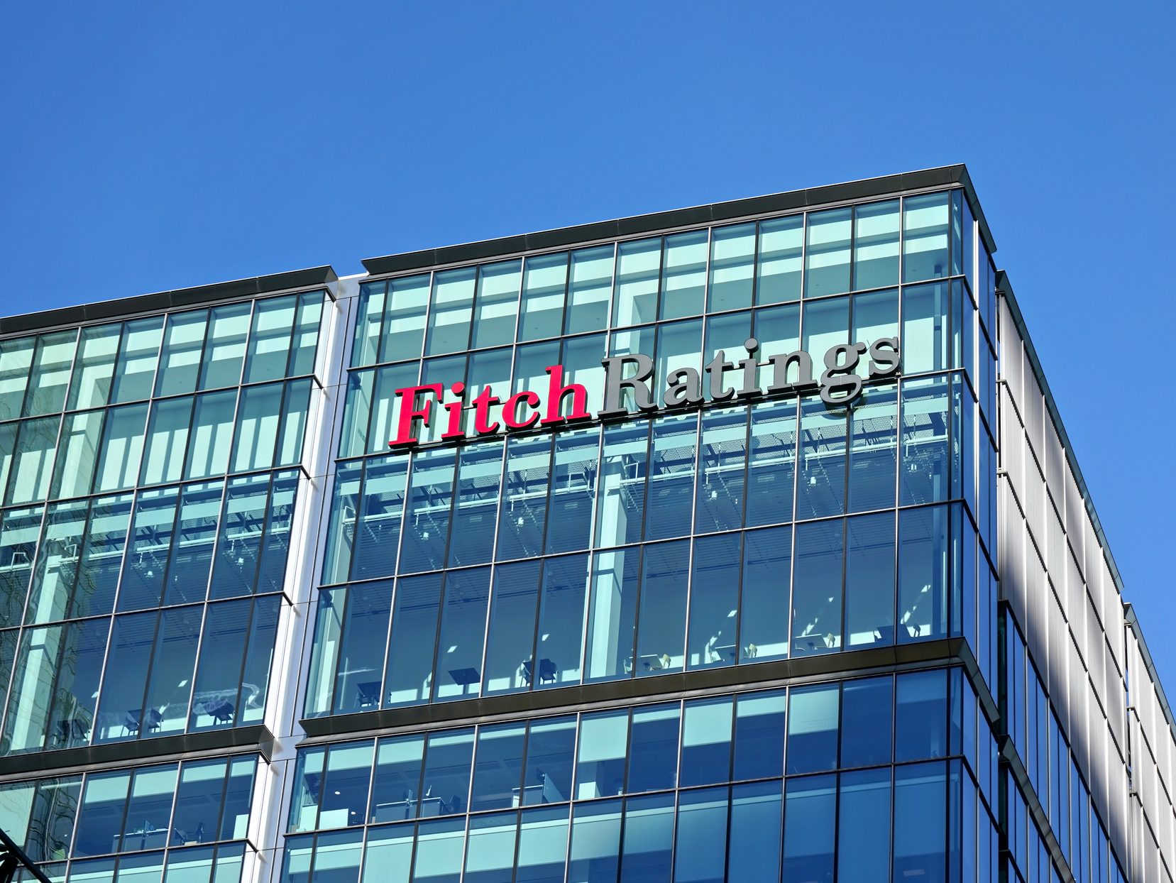 Image: London, United Kingdom - February 03, 2019: Fitch Ratings logo signage at top of their Headquarters in UK (other is in New York), Canary Wharf. FR is one of the Big Three credit rating agencies