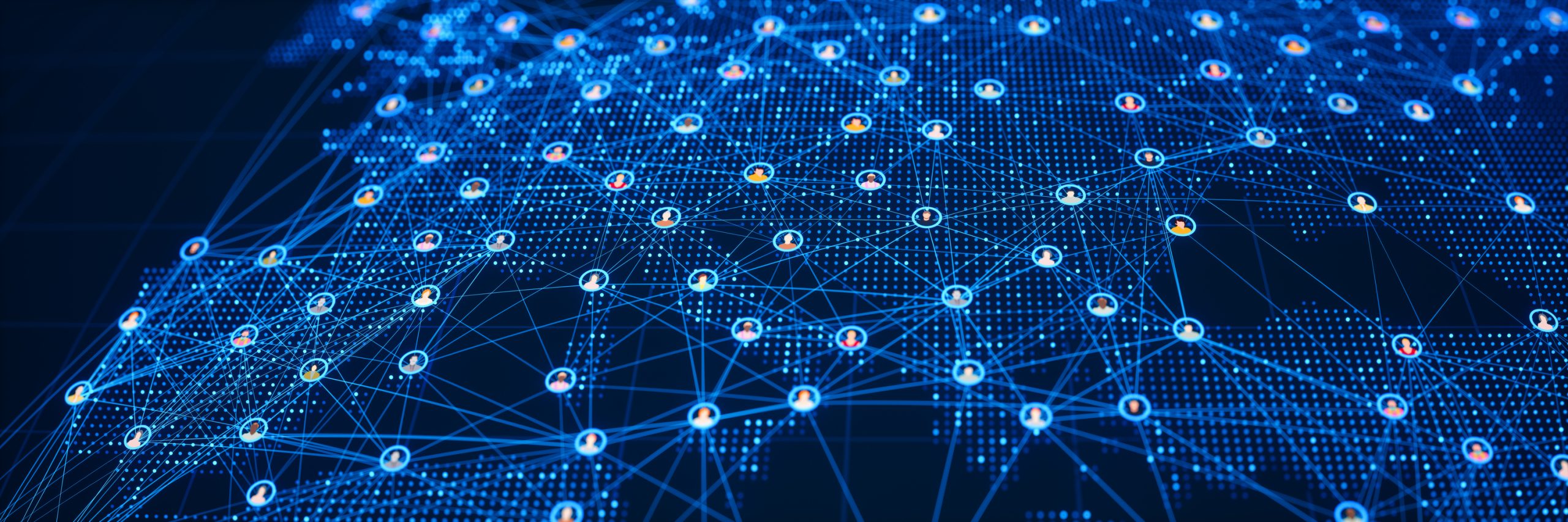 Image: 3d low-poly avatars connected together on an abstract World. Metaverse and virtual global networking.
