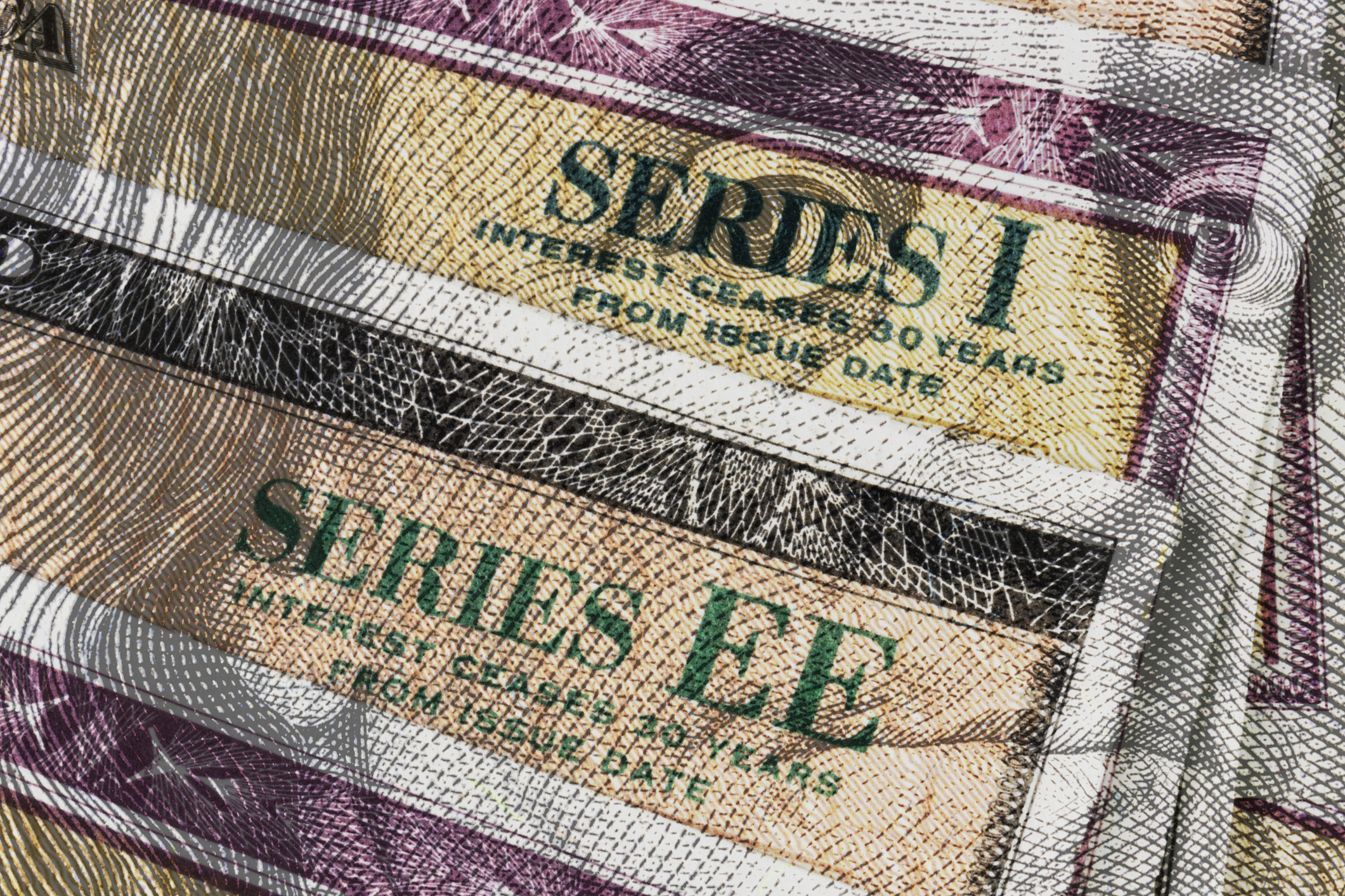 Image: Series I and Series EE US Savings Bonds with a one hundred dollar bill overlay. Source: iStock.