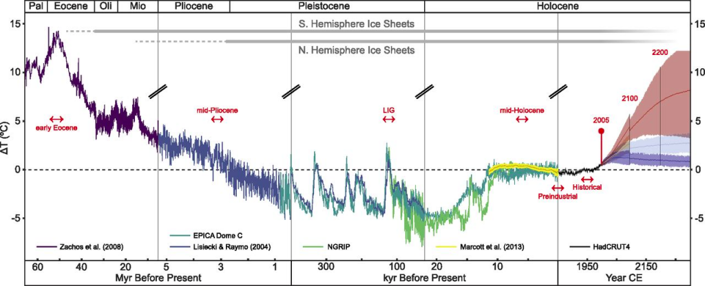 Whatever our individual beliefs, there are trail markers in this new world. The last time carbon dioxide concentrations in Earth’s atmosphere were as high as now was the Late Pliocene Era, three million years ago, according to scientists who have analyzed ice cores and ocean sediments in the coldest place on Earth. At that time, temperatures were several degrees Celsius higher and the oceans at least fifteen meters deeper than today. In recent years, moreover, the annual rate of carbon emissions due to human economic activities has been more than five times the rate of CO2 emissions during the late Pliocene era, as presented in the PBS video, “The Last Time the Globe Warmed.” Martin Siegert, co-director of the Grantham Institute at Imperial College London, said, “We’ve done in a little more than fifty years what the Earth naturally took ten thousand years to do.”