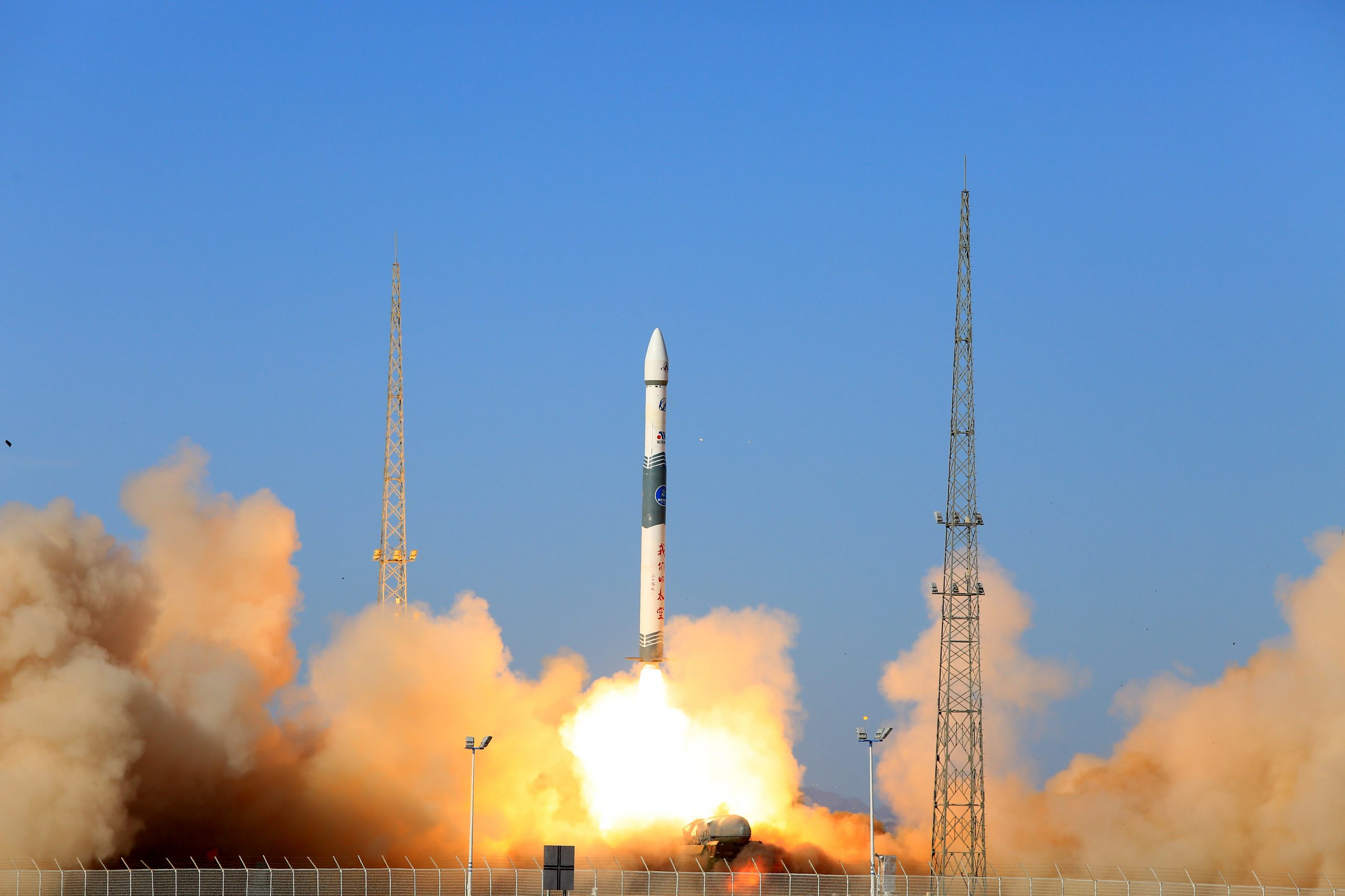 Image: Carrier rocket Kuaizhou 1A (KZ 1A) launches from the Jiuquan Satellite Launch Center in Jiuquan city, north-west China's Gansu province, 13 November 2019. China sent a new remote sensing satellite into planned orbit from the Jiuquan Satellite Launch Center in Northwest China on Wednesday. The Jilin 1 Gaofen 02A, which belongs to the Jilin-1 satellite family, was launched by carrier rocket Kuaizhou 1A (KZ 1A).No Use China. No Use France.