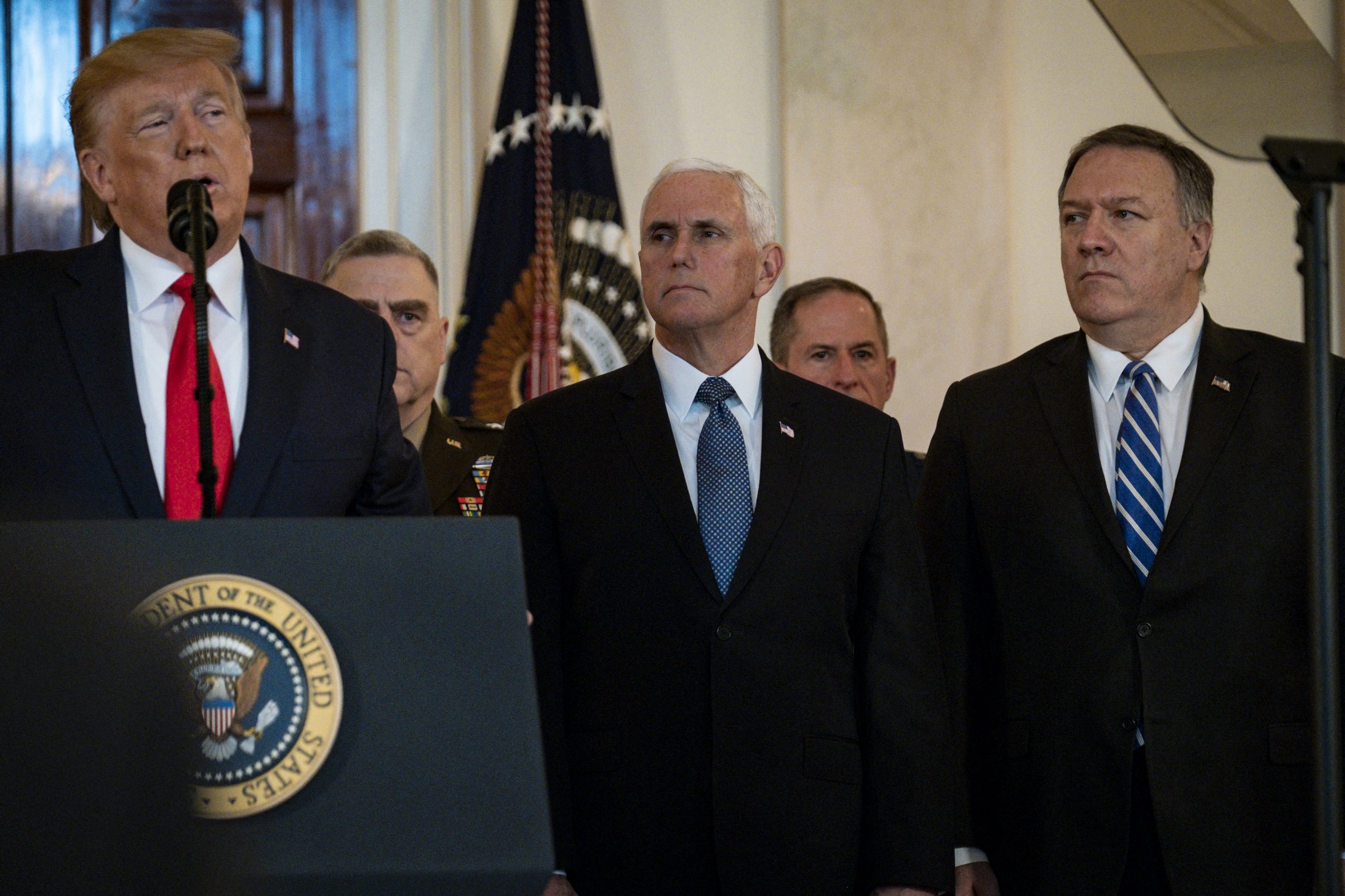 Image: Vice President Mike Pence and Secretary of State Mike Pompeo look on as President Donald Trump delivers a statement on Iran (Reuters)