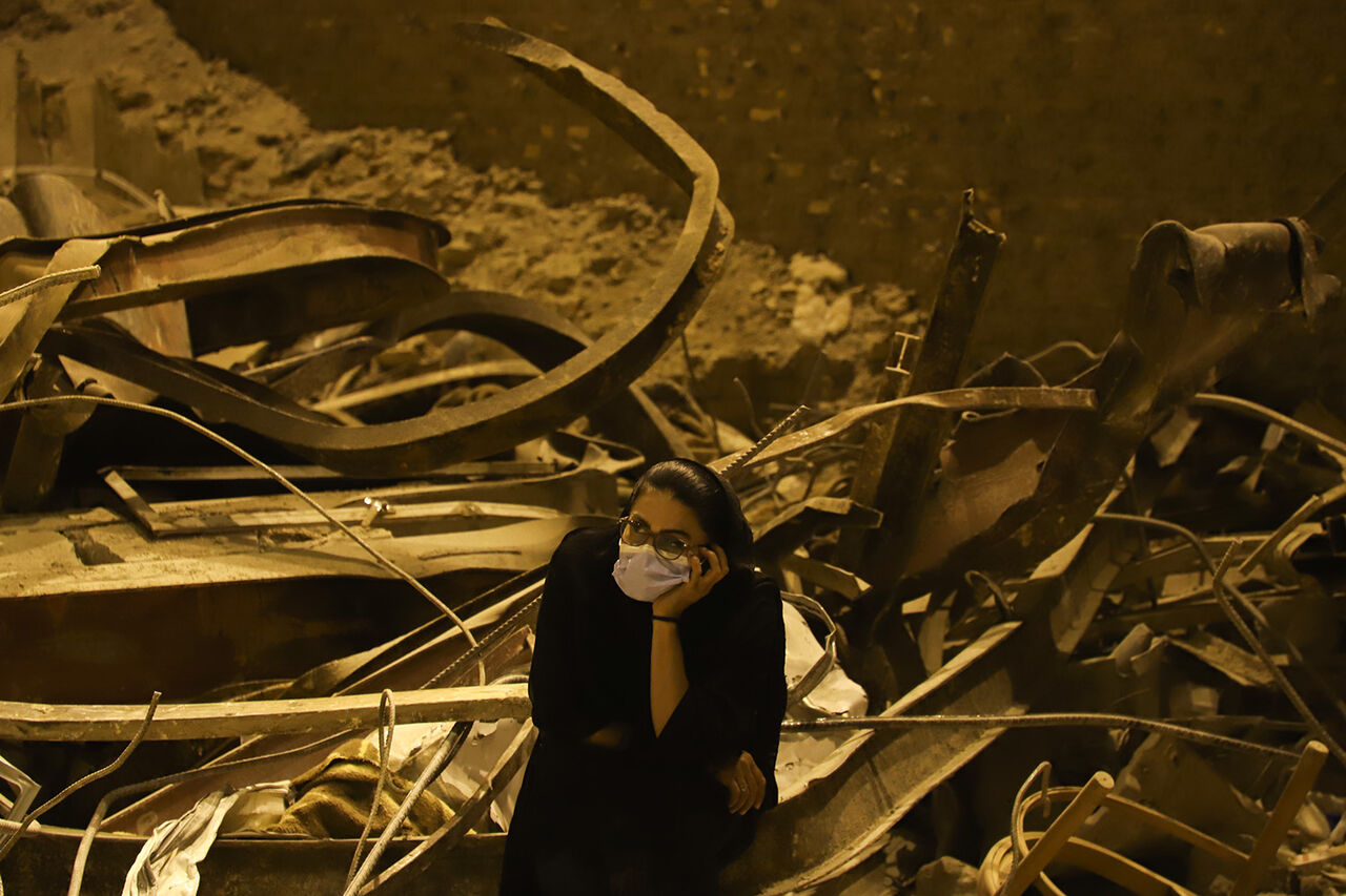 Image: Mother of one of the victims who lost his life in the Metropol collapse is seen at the site of the disaster. (IRNA)
