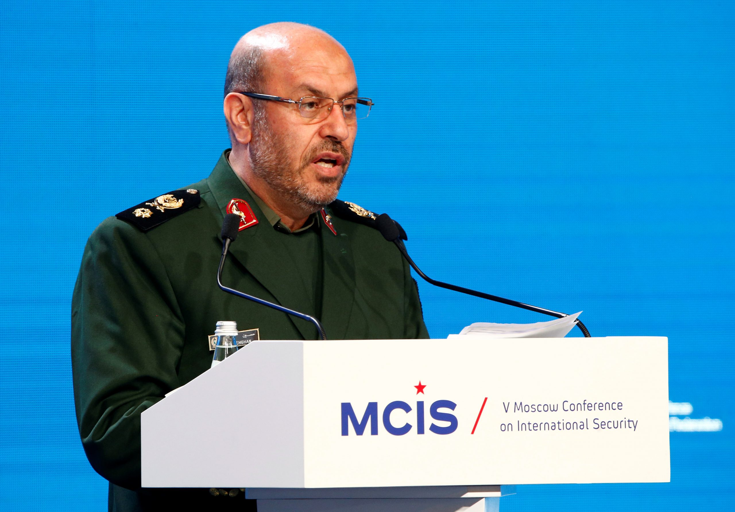 Image: Iranian Defence Minister Hossein Dehghan delivers a speech as he attends the 5th Moscow Conference on International Security (MCIS) in Moscow, Russia, April 27, 2016. VIA REUTERS/Sergei Karpukhin