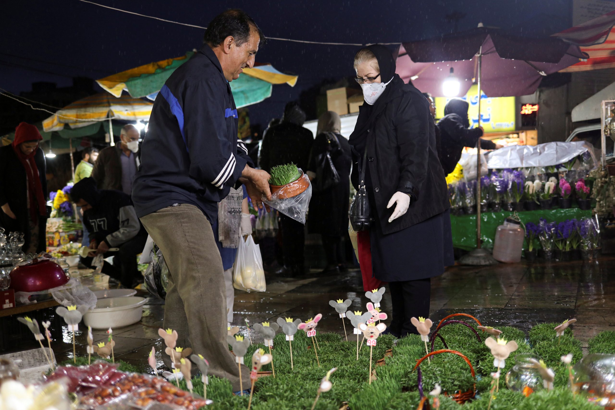 Image: An Iranian woman wears a protective face mask, amid fear of coronavirus disease, as she buys flowers, ahead of the Iranian New Year (Reuters)