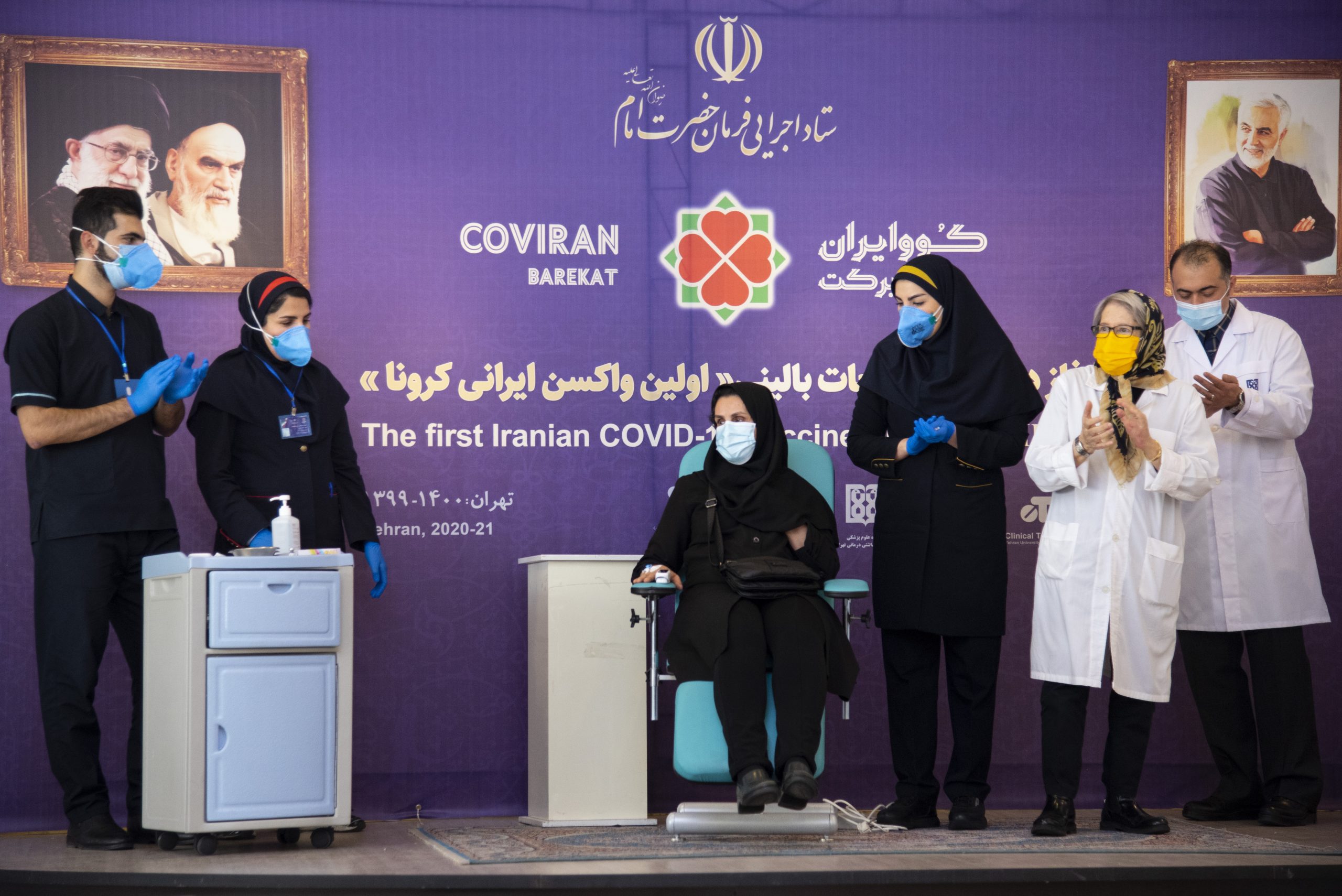 Image: (3/15/2021) Dr. Mehrnaz Rasoulinejad (C) , infectious disease specialist, who volunteered to receive the Barekat vaccine to begin phase 2 and 3 of its clinical trial. (Photo by Sobhan Farajvan/Pacific Press/Sipa USA)No Use Germany.
