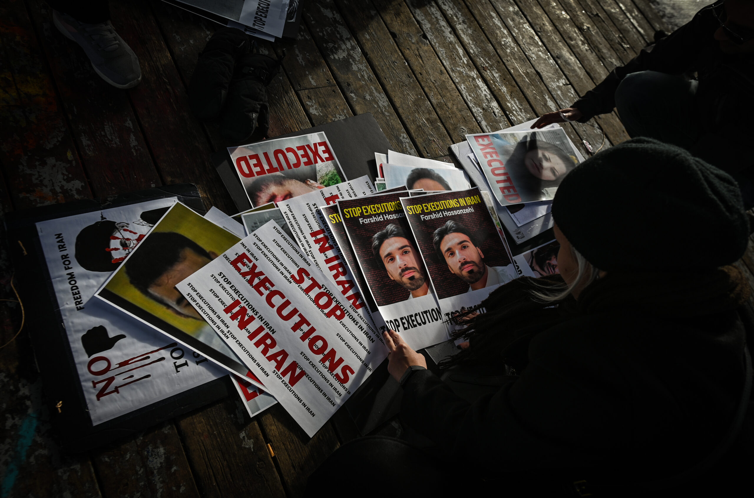 Image: EDMONTON, CANADA - JANUARY 27, 2024: Members of the Iranian diaspora and activists gather in Dr. Wilbert McIntyre Park during the 'United Against Executions in Iran' protest, condemning the increase in death sentences by the rulers of the Islamic Republic of Iran, on January 27, 2024, in Edmonton, Alberta, Canada. In 2023, Human Rights Activists in Iran (HRANA), a non-political and nongovernmental organization dedicated to defending human rights, reported that at least 746 people were executed in Iran. (Photo by Artur Widak/NurPhoto)