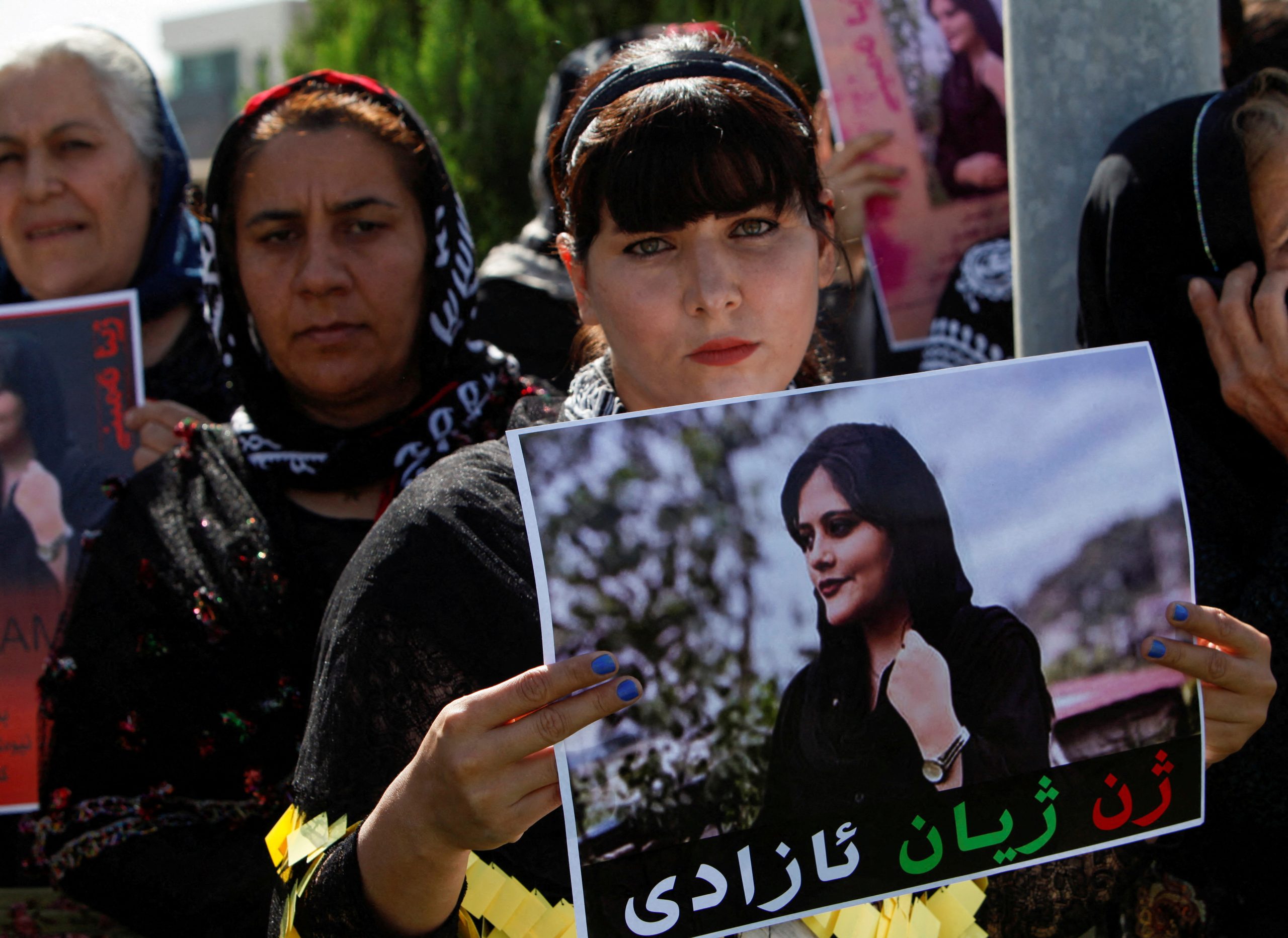 Image: A woman holds a placard during a protest following the death of Mahsa Amini in front of the United Nations headquarters in Erbil, Iraq September 24, 2022. REUTERS/Azad Lashkari