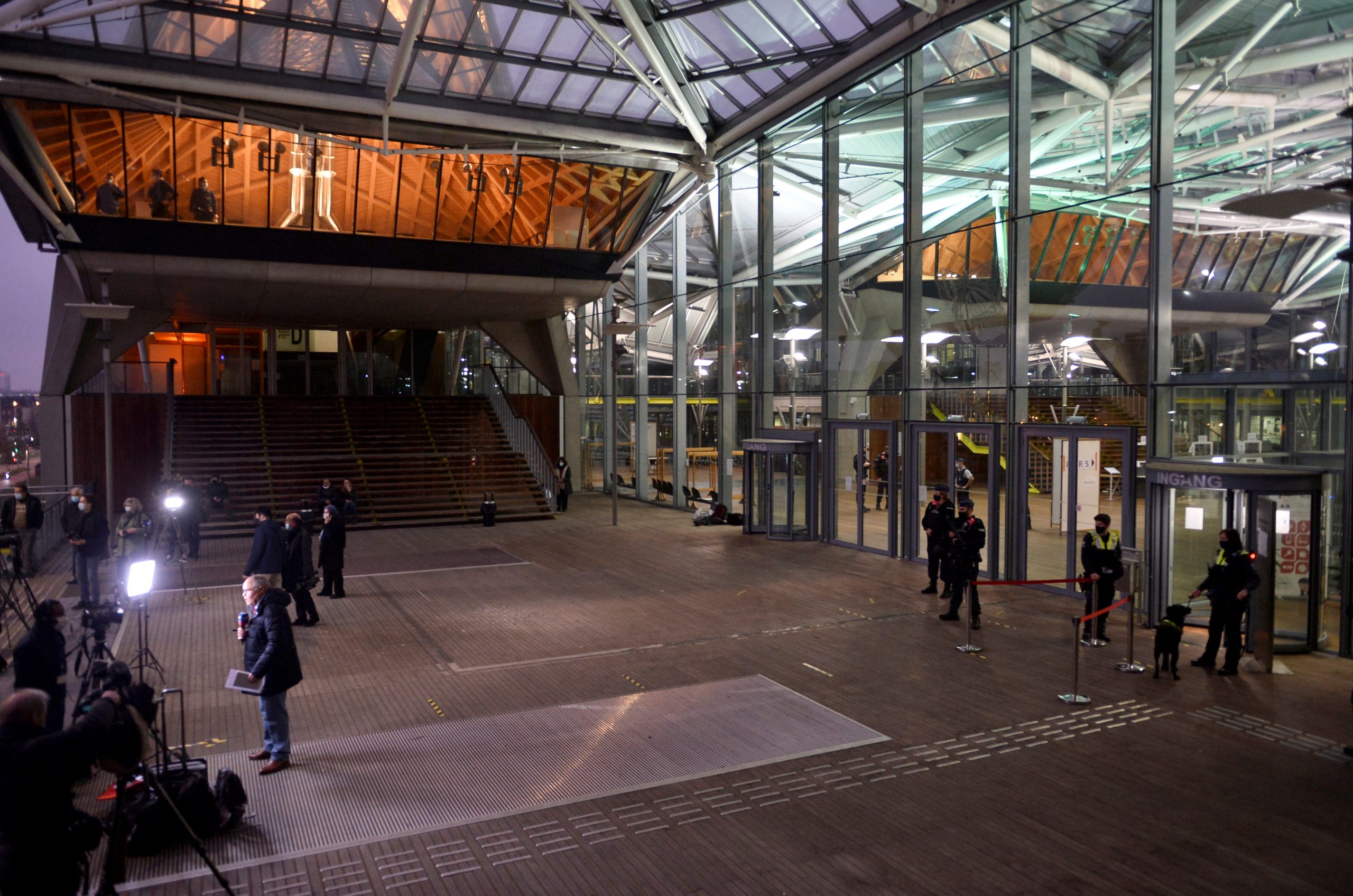Image: Police officers stand guard before a trial of Iranian diplomat Assadollah Assadi, charged in Belgium with planning to bomb a meeting of an exiled Iranian opposition group in France, at the entrance to the court building in Antwerp, Belgium November 27, 2020. REUTERS/Johanna Geron