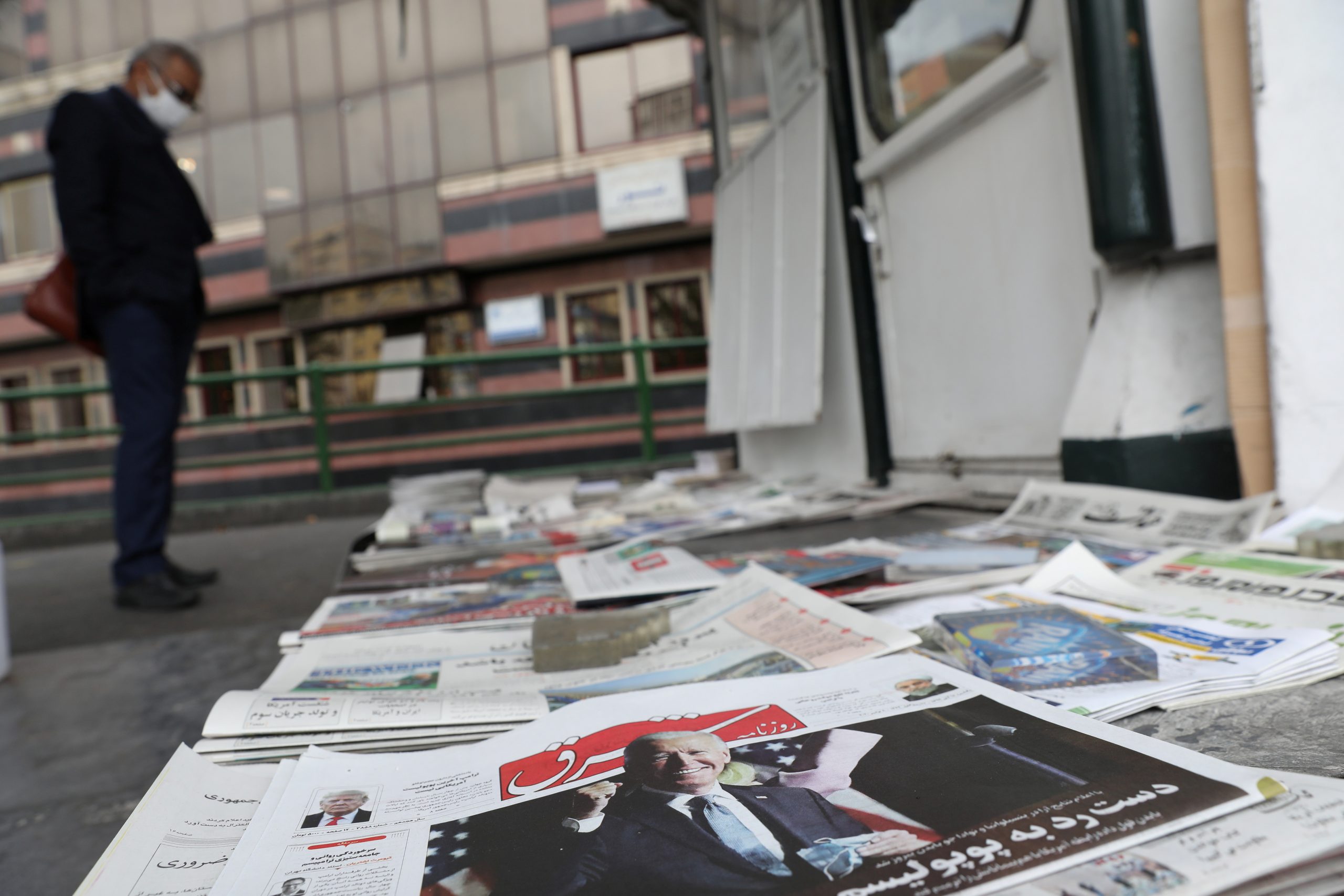 Image: A newspaper with a front picture of US President-elect Joe Biden is seen at a newsstand in Tehran, Iran November 8, 2020. Majid Asgaripour/WANA (West Asia News Agency) via REUTERS