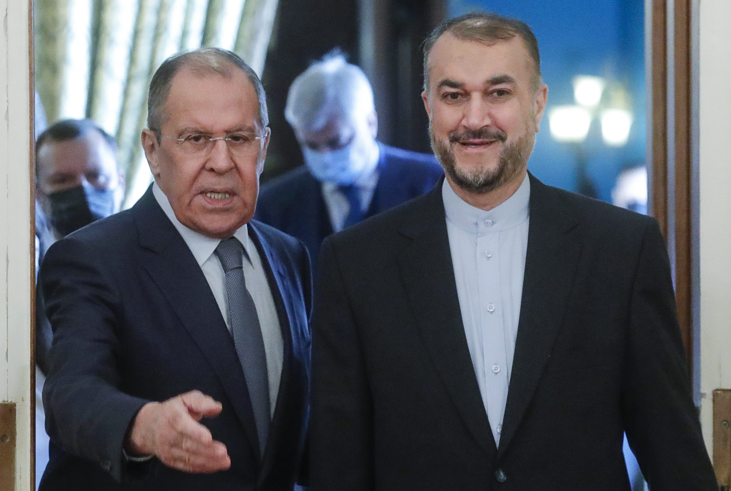 Image: MOSCOW, RUSSIA - OCTOBER 6, 2021: Russia's Foreign Minister Sergei Lavrov (L) and Iran's Foreign Minister Hossein Amir-Abdollahian meet for talks at the Russian Foreign Ministry's Reception House in Spiridonovka Street. Mikhail Japaridze/TASS.