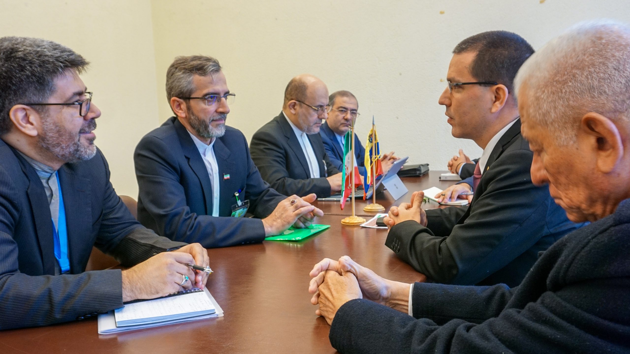 Image: In the photos taken on February 25, 2020, Venezuelan Foreign Minister Jorge Arreaza (2nd right), during a bilateral meeting with Ali Bagheri Kani (2nd left), deputy of International Affairs of the Judiciary and secretary of the High Council for Iran's Human Rights at the UN offices in Geneva, Switzerland on February 25, 2020. The meeting took place during the 43rd session of the Human Rights Council of the United Nations Organization (UN), which It is celebrated in the European country until next March 20. via Reuters
