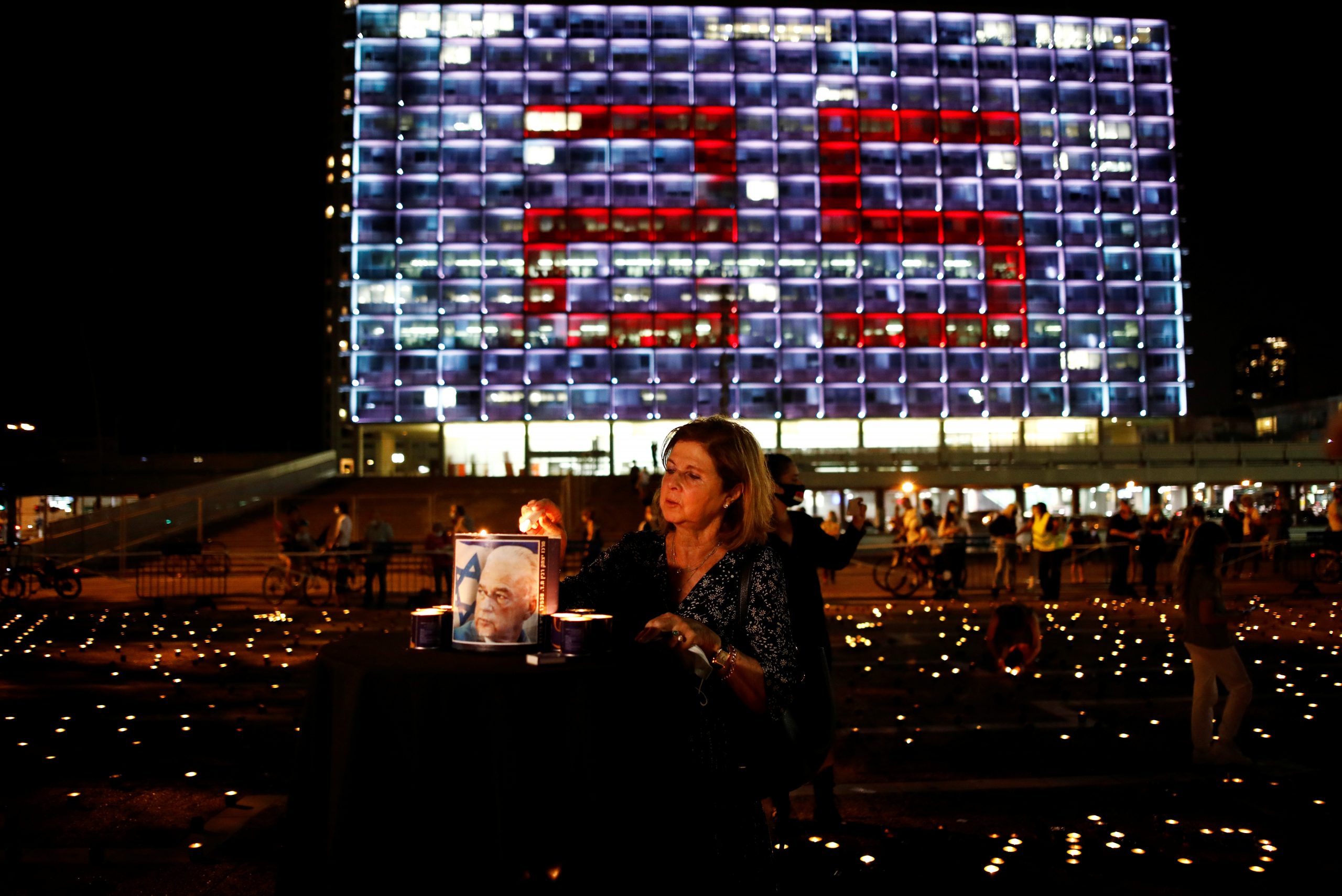 Image: Daila Rabin, daugther of late Israeli Prime Minister Yitzhak Rabin, lights a candle, as part of what the Yitzhak Rabin Center say is the 25,000 candles lit during a memorial event commemorating the 25th anniversary of the assassination of Israeli Prime Minister Yitzhak Rabin, amid the coronavirus disease (COVID-19) crisis, in Tel Aviv, Israel October 29, 2020. REUTERS/Corinna Kern