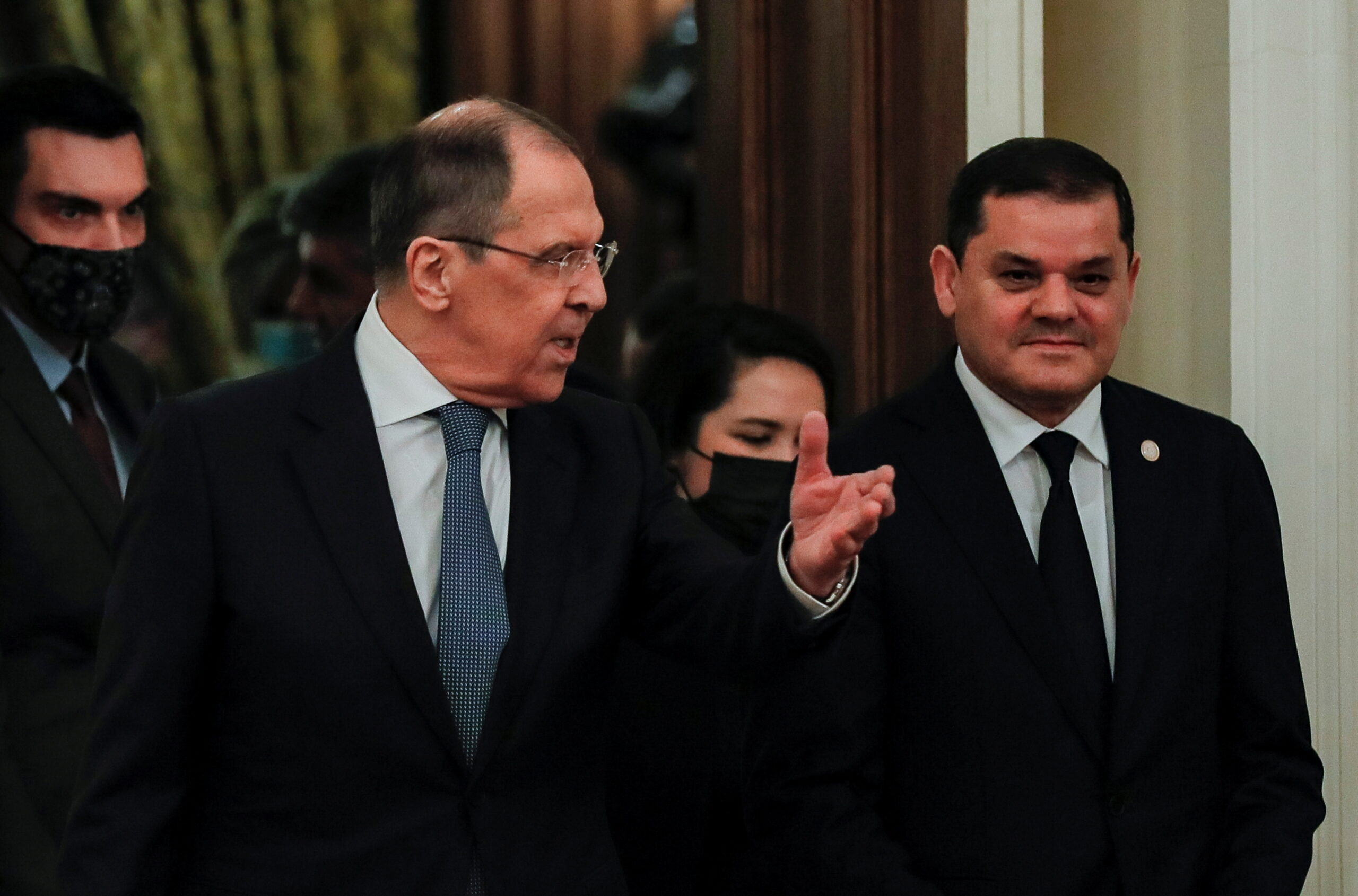 Image: Russia's Foreign Minister Sergei Lavrov attends a meeting with Libya's Prime Minister Abdulhamid Dbeibeh in Moscow, Russia April 15, 2021. Yuri Kochetkov/Pool via REUTERS