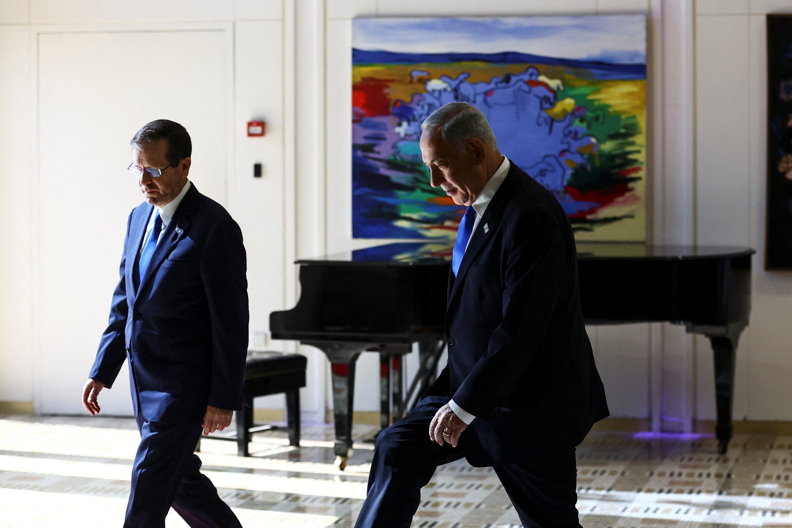 Image: Israel President Isaac Herzog hands Benjamin Netanyahu the mandate to form a new government following the victory of the former premier's right-wing alliance in this month's election at the President's residency in Jerusalem November 13, 2022. REUTERS/Ronen Zvulun