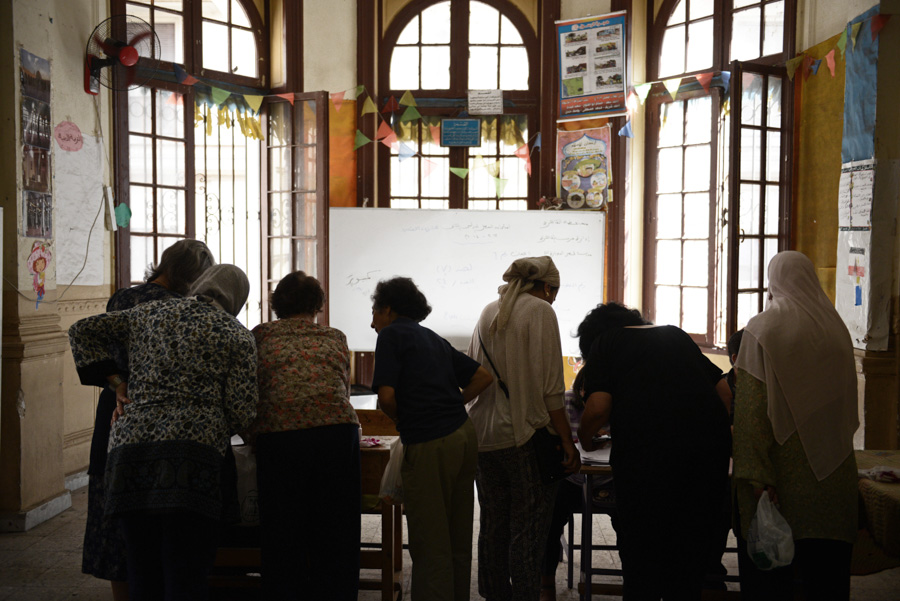 CAIRO, EGYPT – MAY 26: Egyptian voters check their names in a polling station in the Garden City suburb of Cairo.