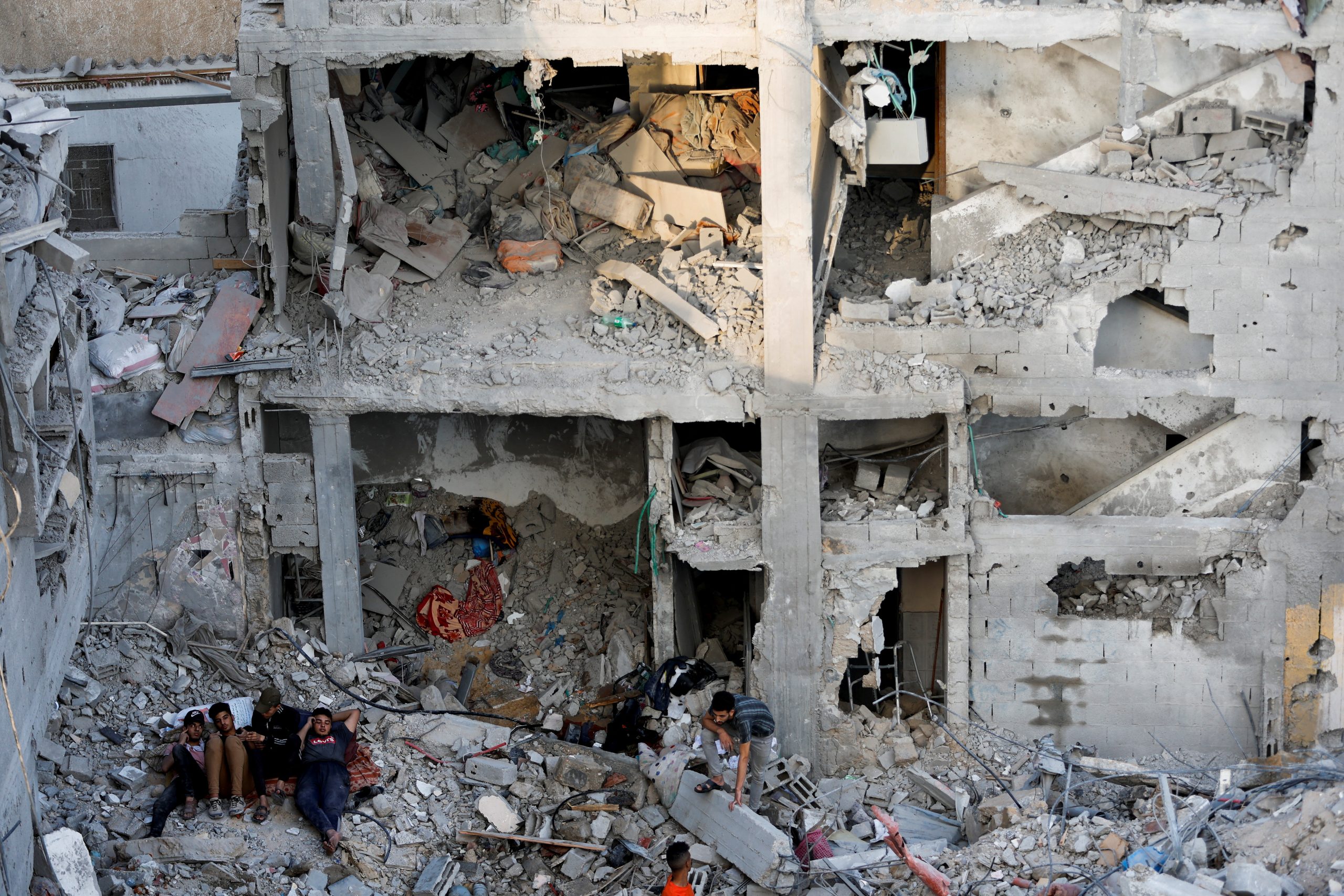 Image: Palestinians gather at the scene where senior commander of Islamic Jihad militant group Khaled Mansour was killed in Israeli strikes, in Rafah in the southern Gaza Strip, August 7, 2022. REUTERS/Ibraheem Abu Mustafa