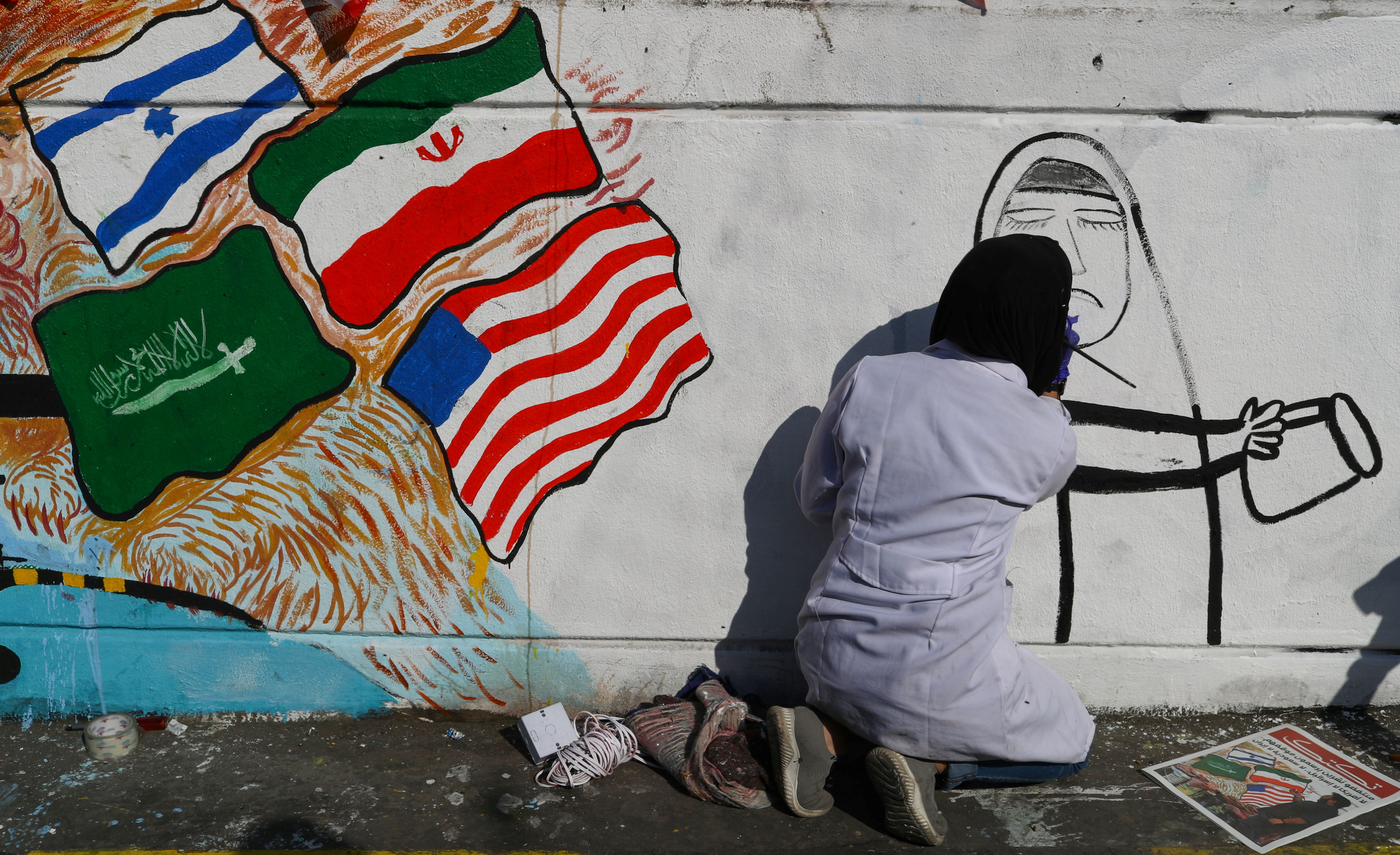 Image: An Iraqi woman demonstrator, paints a mural during ongoing anti-government protests, in Baghdad, Iraq November 19, 2019. REUTERS/Thaier al-Sudani