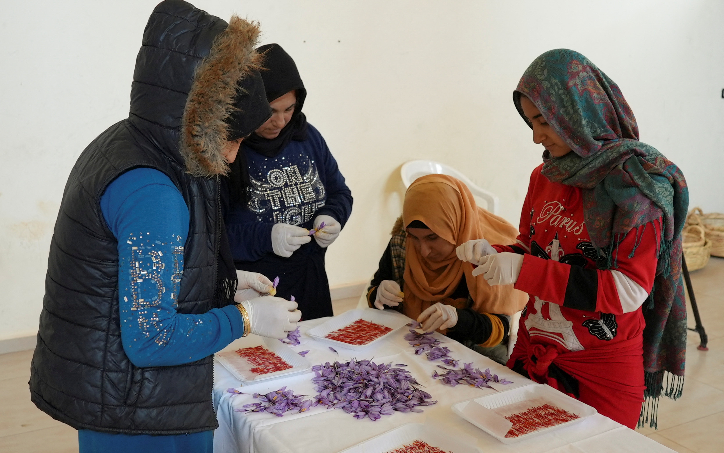 Image: Women seperate stigmas from saffron flowers in the village of Hizzine, Lebanon November 10, 2022. REUTERS/Issam Abdallah