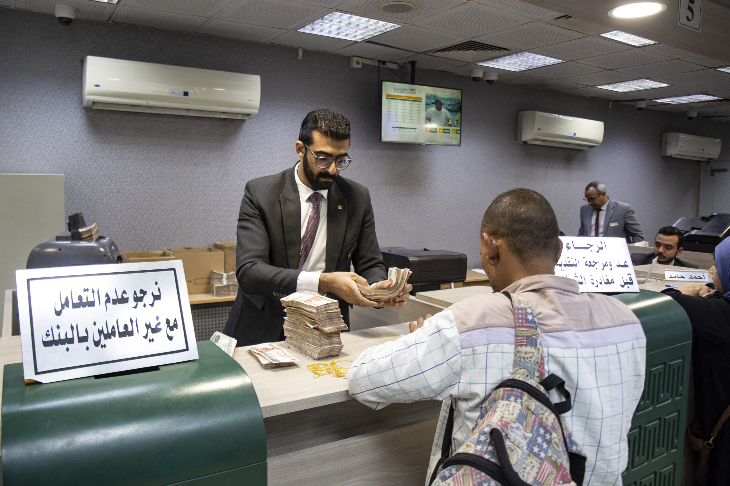 Image: People turn to Banque Misr and the National Bank to buy three-year savings certificates, with a return of up to 22% and the return is paid monthly, or 19% interest is also paid monthly, and this came in conjunction with raising the interest rate by 200 points, as citizens began searching on Google engines about Ways to buy a National Bank certificate with a return of 22 and 19% per month, to invest their money in it. The National Banking Bank said during its statement today that the issuance of two savings certificates for a period of 3 years reflects the positive vision of lower interest rates during the coming period with the expected gradual decline in inflation rates with the stability of markets in Shadow of International and Domestic Variables and the Central Bank of Egypt's Inflation Targeting Policy April 3, 2023 in Cairo, Egypt. (Photo by Mahmoud Elkhwas/NurPhoto)