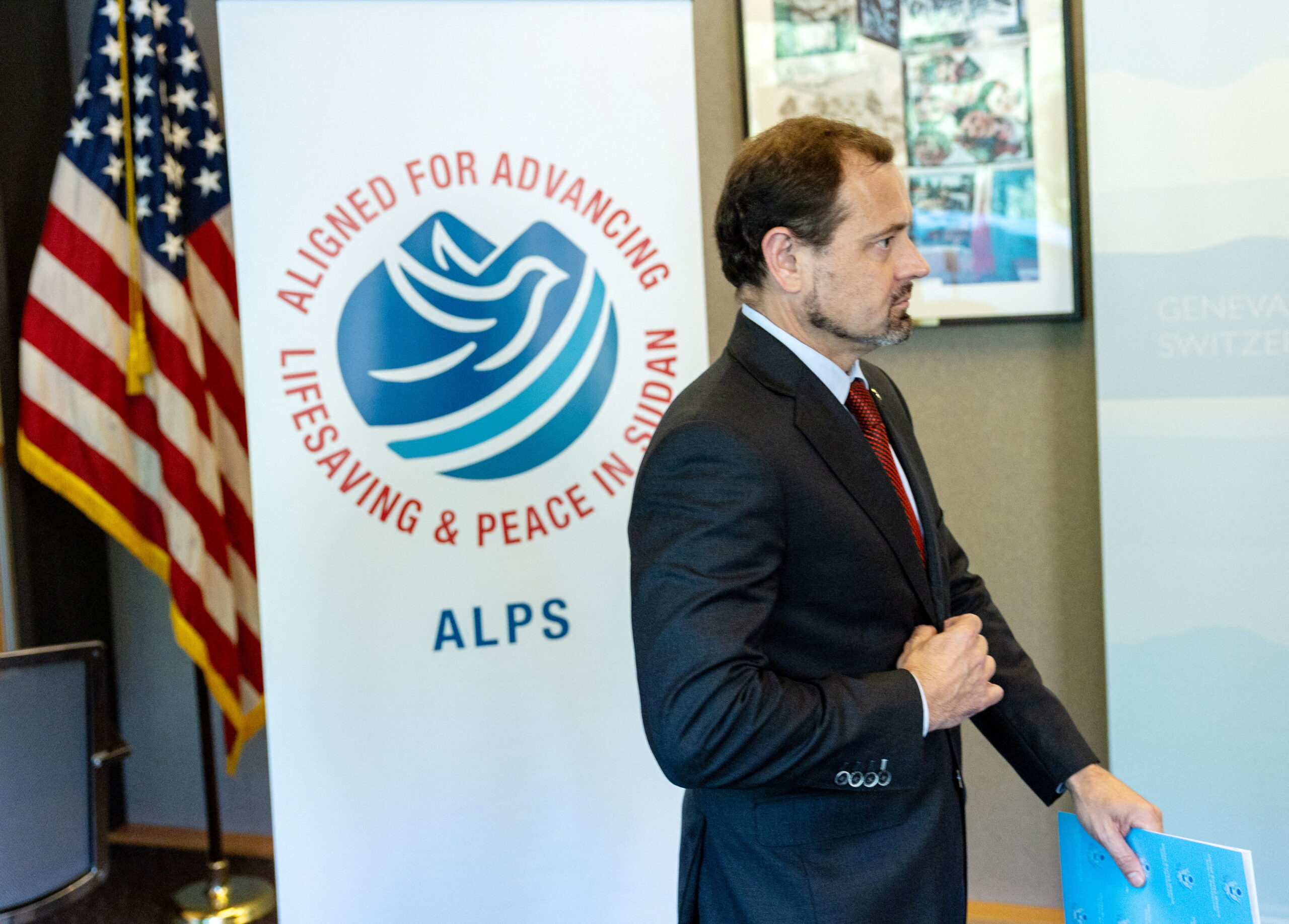 Image: U.S. Envoy for Sudan, Tom Perriello attends a press briefing on sidelines of Sudan peace talks at the U.S. Mission in Geneva, Switzerland, August 23, 2024. REUTERS/Denis Balibouse