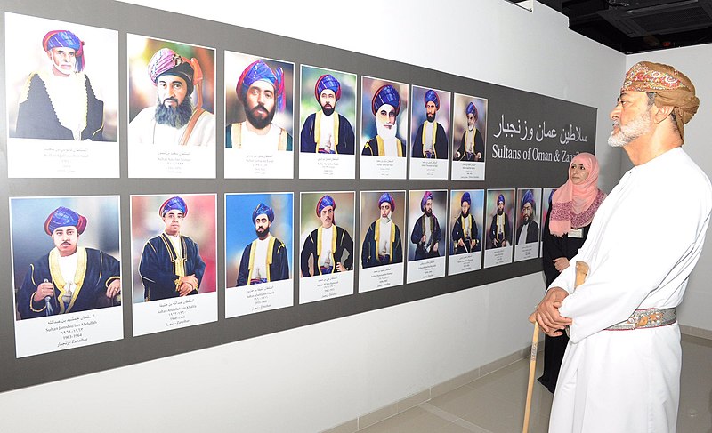 Image: English: Sultan Haitham seen with pictures of the Sultans of Oman and the Sultans of Zanzibar (Wikimedia Commons)