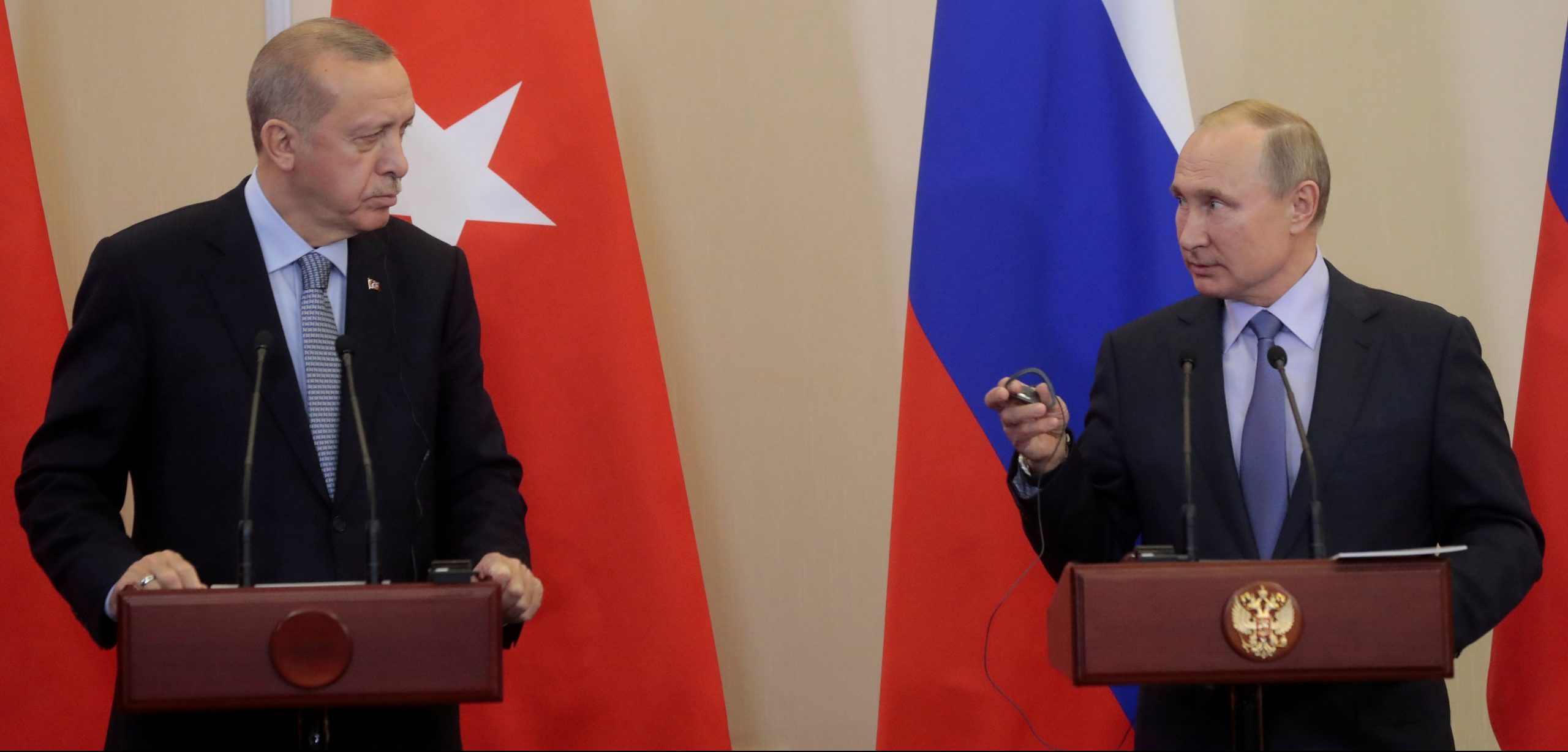 Image: Russian President Vladimir Putin (R) and Turkish President Recep Tayyip Erdogan (L) attend a joint news conference following Russian-Turkish talks in the Black sea resort of Sochi, Russia October 22, 2019. Sergei Chirikov/Pool via REUTERS/File Photo