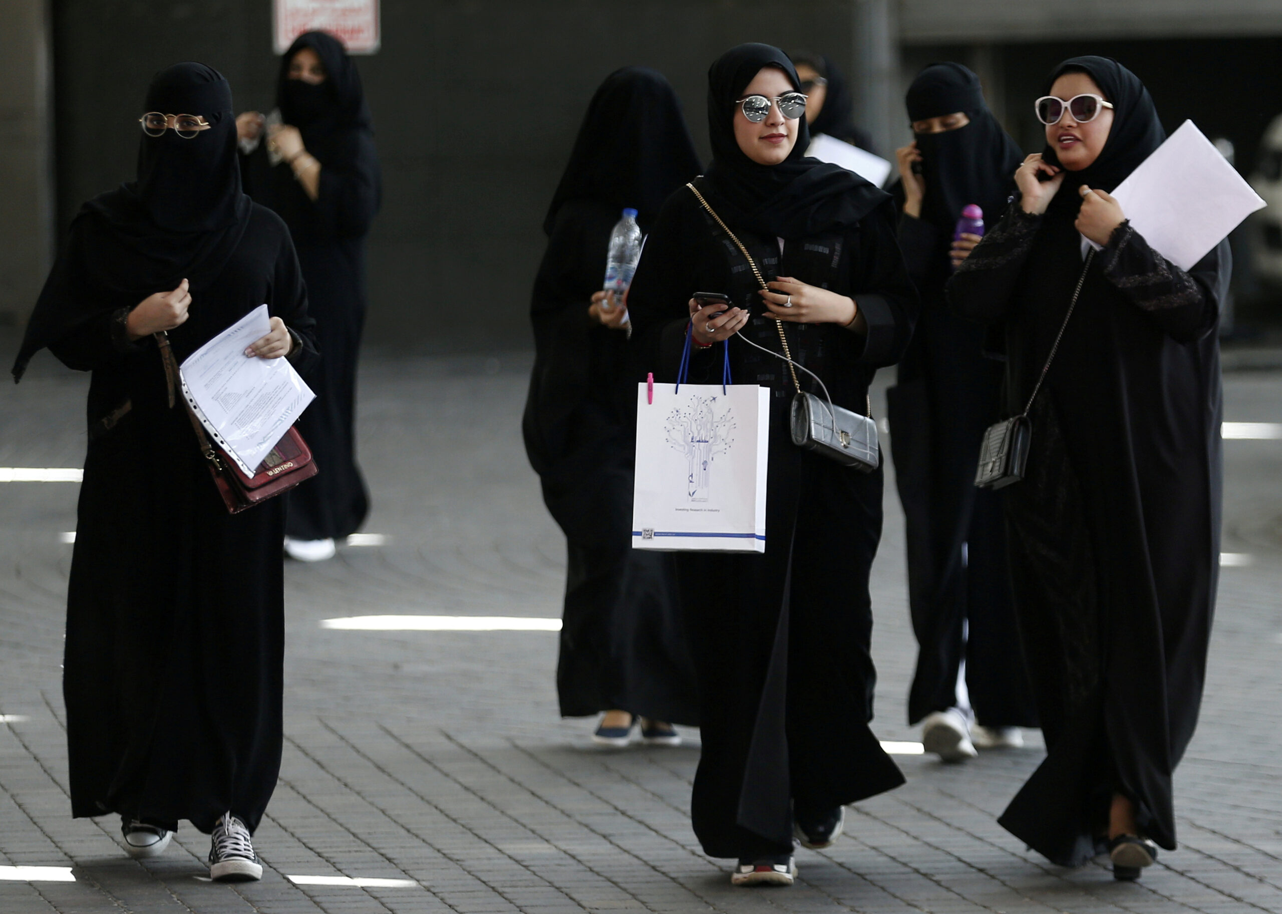 Image: Saudi students walk at the exhibition to guide job seekers at Glowork Women's Career Fair in Riyadh, Saudi Arabia October 2, 2018. REUTERS/Faisal Al Nasser