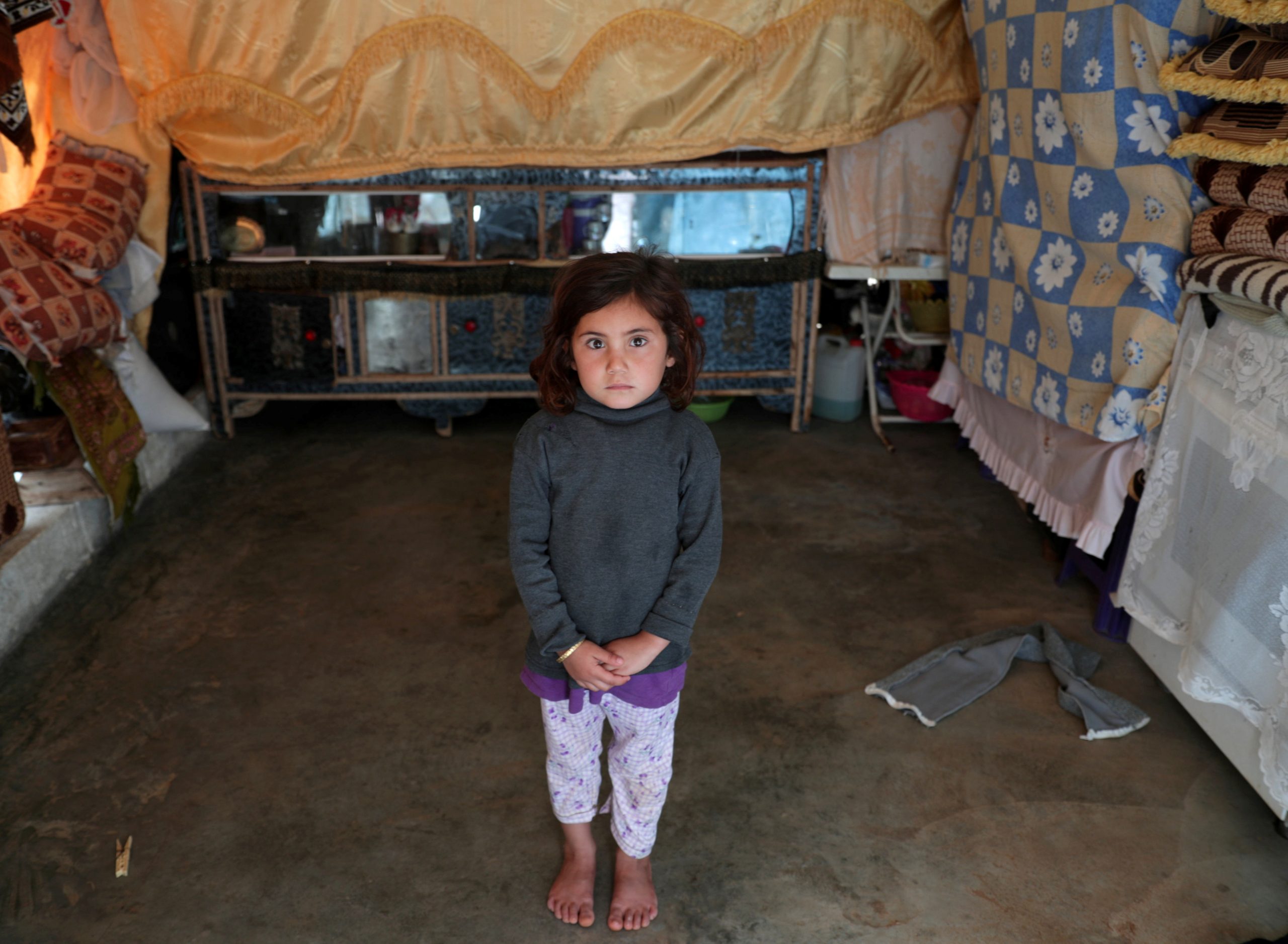 Image: Maysaa Mahmoud, five-year-old Syrian displaced child from Homs countryside, poses for a picture in a tent at Atmeh camp, near the Turkish border, Syria June 19, 2020. Picture taken June 19, 2020. REUTERS/Khalil Ashawi