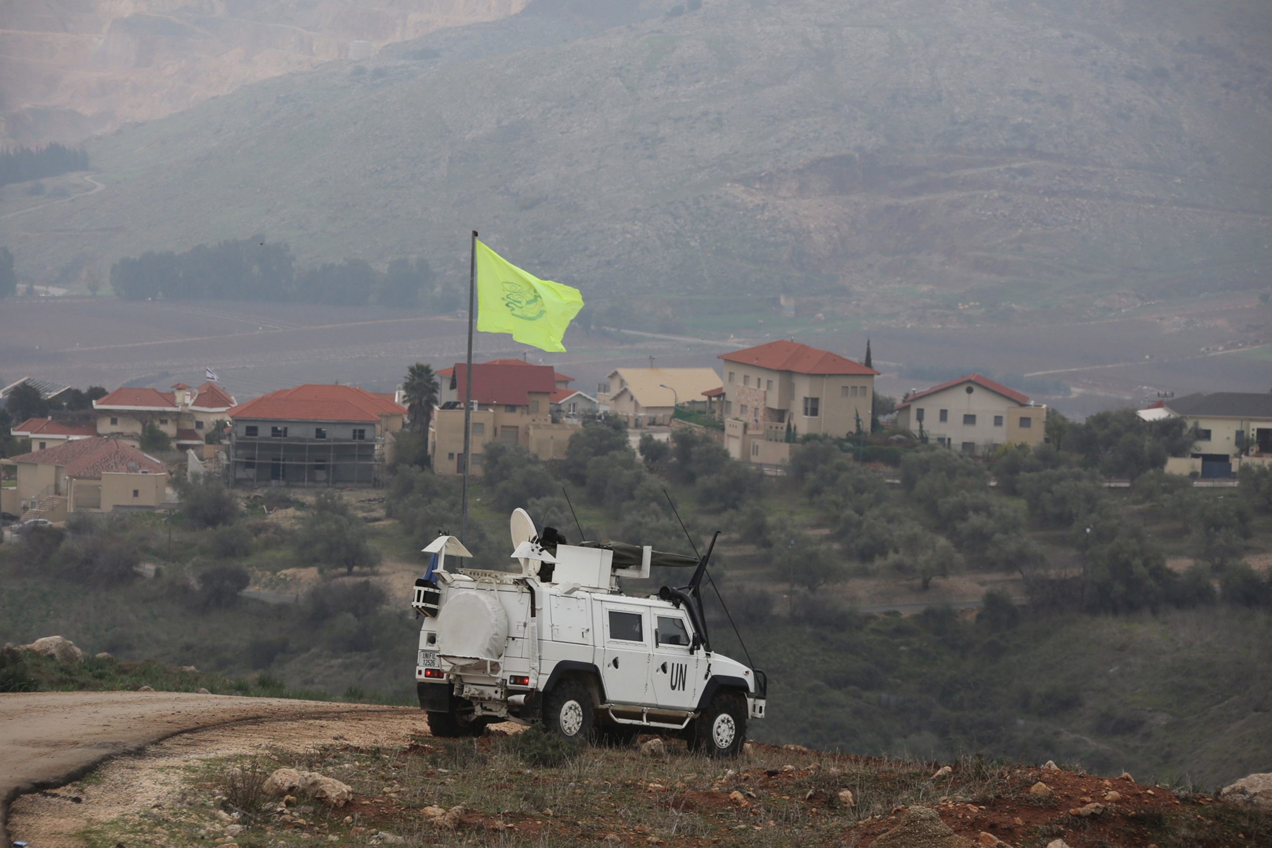 Image: Members of U.N. peacekeepers of the United Nations Interim Force in Lebanon (UNIFIL) sit in their vehicle at a lookout point in the town of Al Wazzani, near the Lebanese-Israeli border, in southern Lebanon January 5, 2016. REUTERS/Aziz Taher