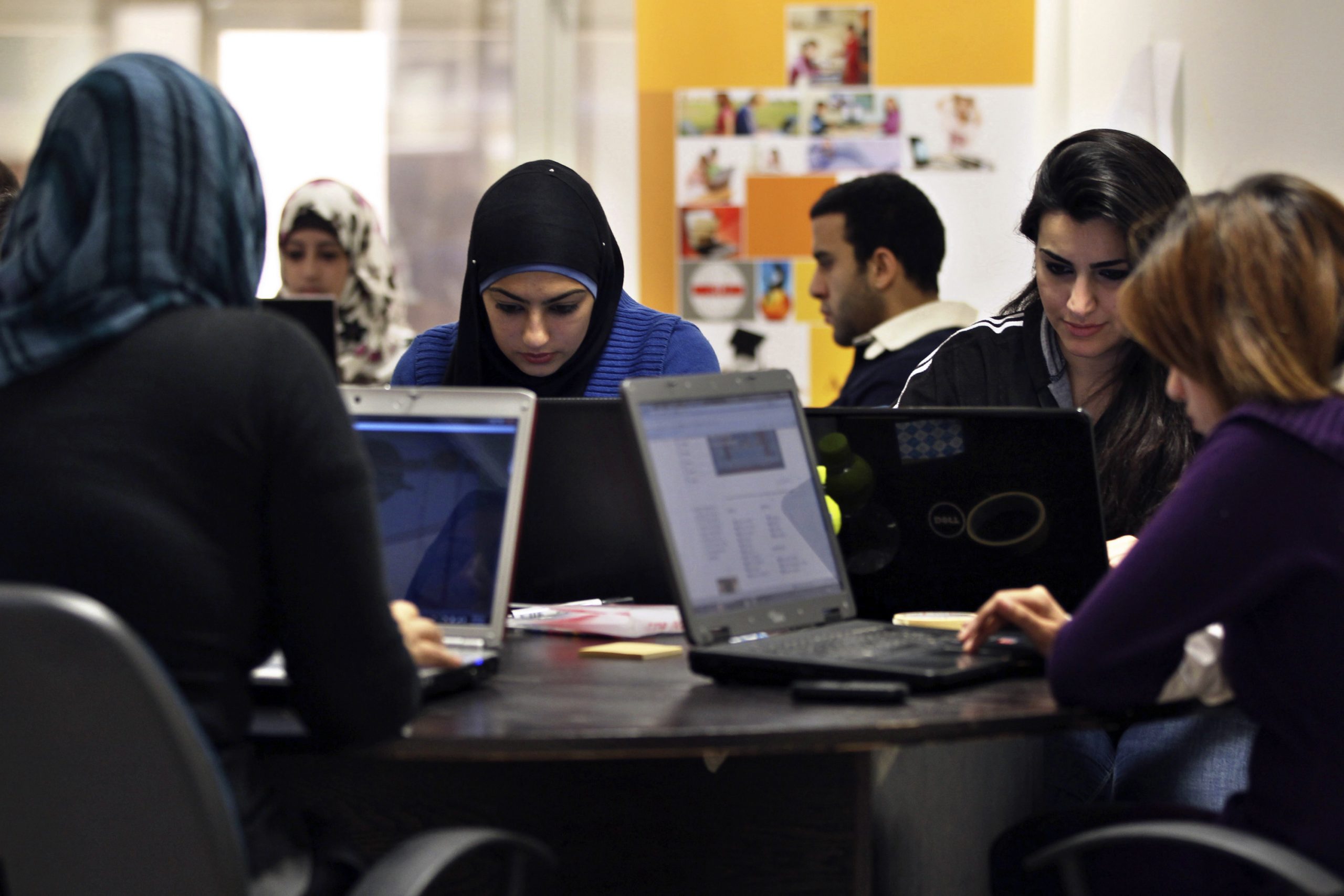 Image: Young entrepreneurs work on their laptops at the Amman-based Oasis 500, a seed investment firm which finances start-up firms in the region's information technology sector, November 2, 2011. REUTERS/Muhammad Hamed