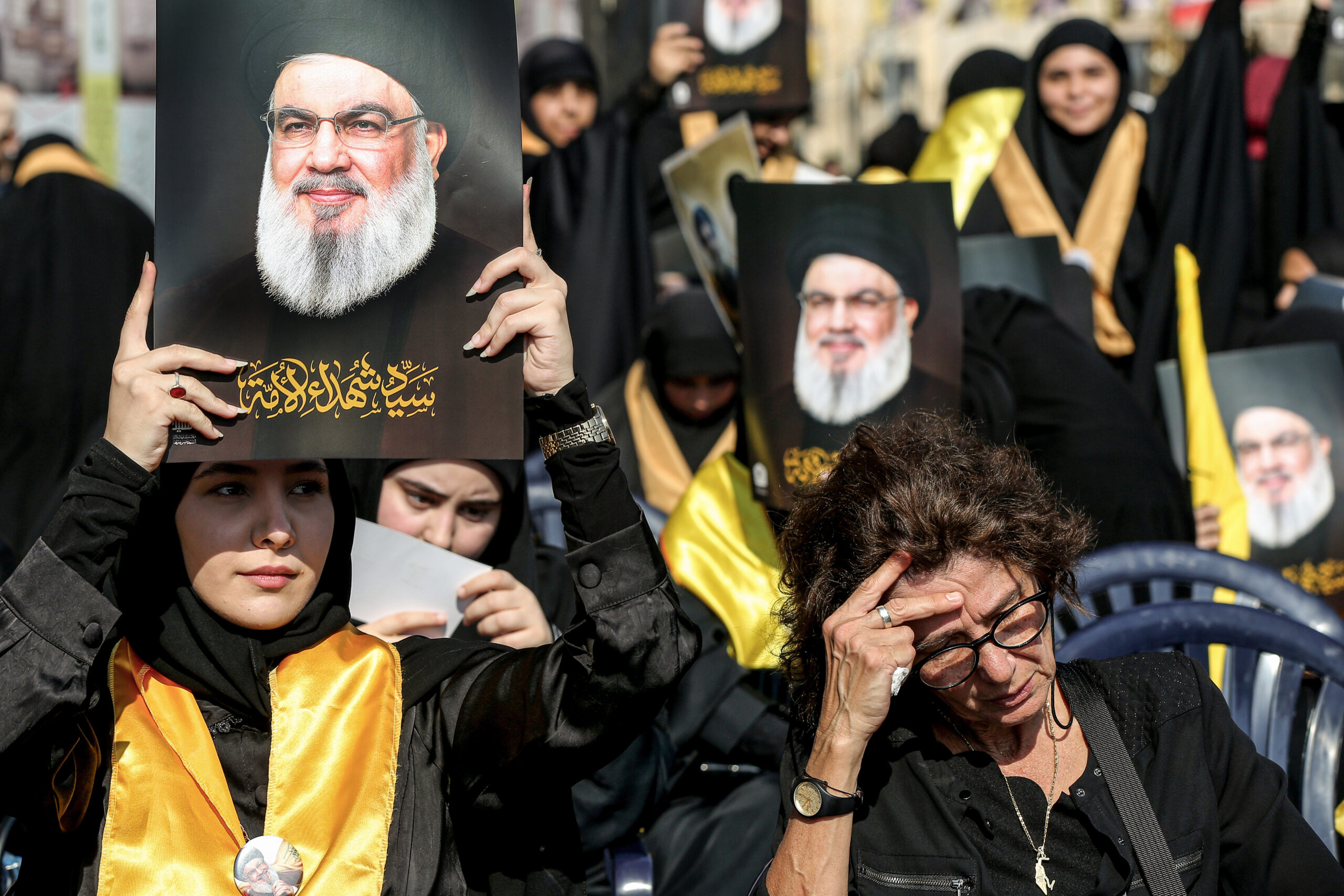 Image: Supporters of pro-Iranian Hezbollah take part in a ceremony marking the first anniversary of the assassination of party leader Hassan Nasrallah in a massive Israeli air strike, at Nasrallah's grave in Beirut.