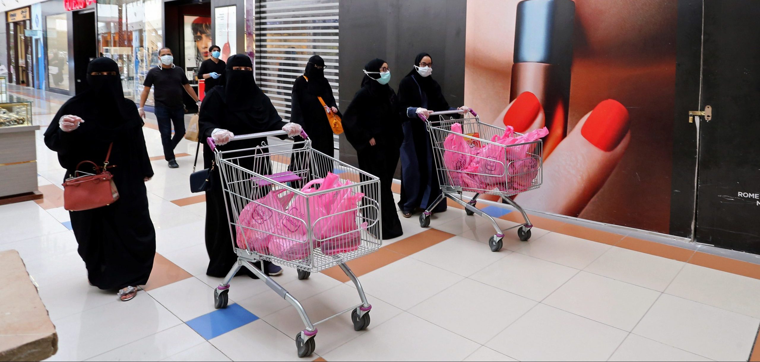 Image: Women shop at a shopping mall after the Saudi government eased a curfew and allowed stores to open, following the outbreak of the coronavirus disease (COVID-19), in Riyadh, Saudi Arabia May 2, 2020. REUTERS/Ahmed Yosri