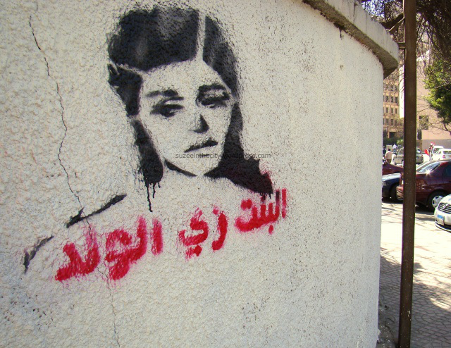 The past two years of street art in Cairo have been a fascinating narrative of the political and social turmoil of Egypt since January 25. Graffiti artists have documented the uprisings and downfalls beset upon our society, depicting the struggles of those without a voice. One interesting thread to follow is the narrative of Egyptian women since the revolution: street artists in Cairo, most of whom were men, took on the cause, advocating for women’s rights, shedding light on the injustice and violence suffered by women, and paying tribute to the brave women fighting for equality in post-revolutionary Egypt.