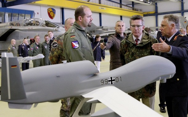Soon after his appointment, de Maizière attended the 2012 NATO Chicago Summit, where Germany’s Chancellor Angela Merkel agreed to participate in NATO’s Alliance Ground Surveillance program. That entailed NATO signing a $1.7 billion contract with U.S. defense technology firm Northrop Grumman for five Global Hawk unmanned aerial vehicles (UAVs).