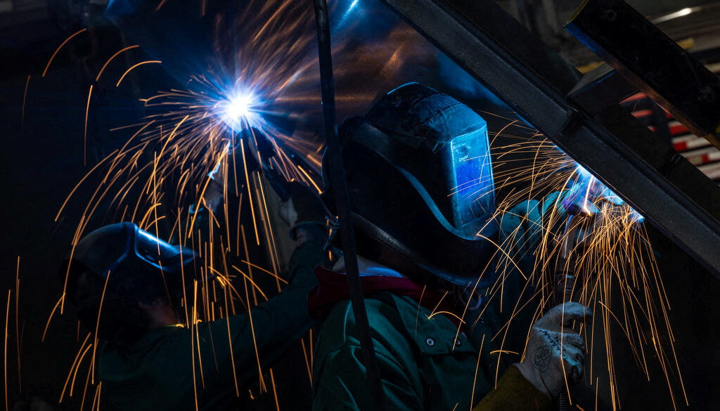 Image: Workers weld at a factory floor in Columbus, Ohio, U.S., March 26, 2024. REUTERS/Carlos Barria