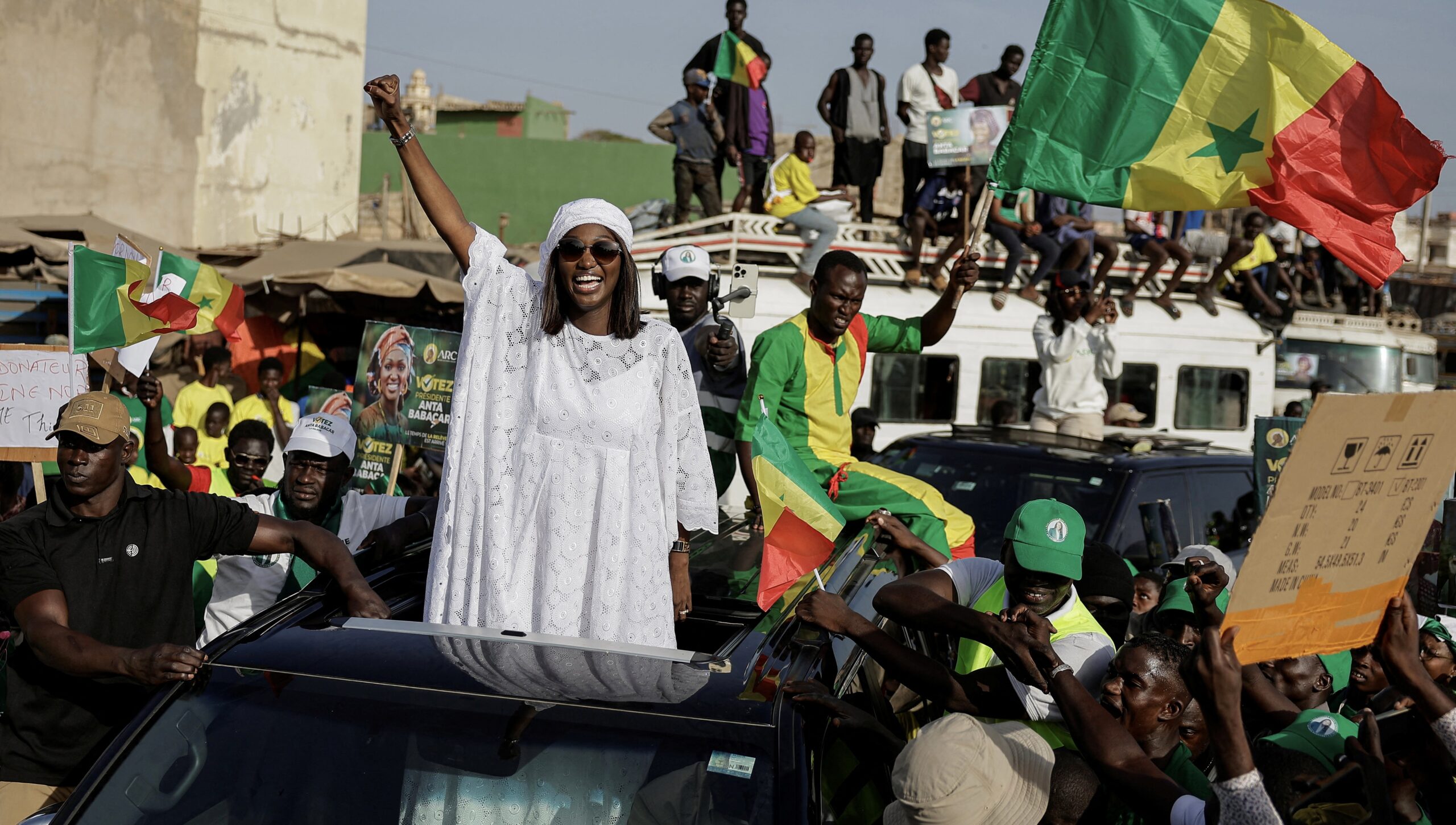 Image: Senegalese presidential candidate Anta Babacar cheers her supporters during her electoral campaign caravan in Thiaroye on the outskirts of Dakar, Senegal March 10, 2024.REUTERS/ Zohra Bensemra