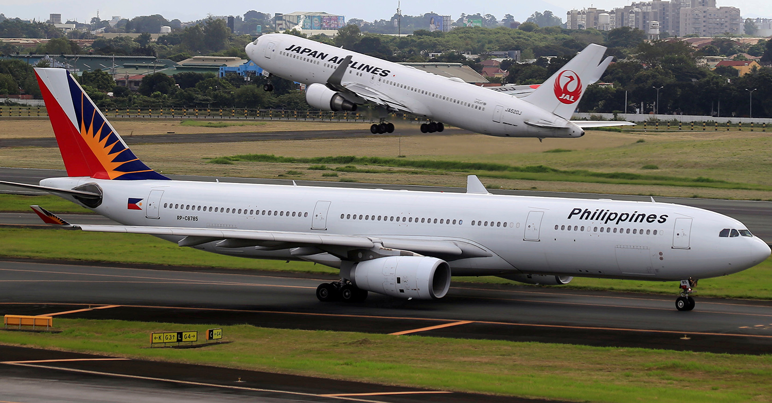 Image: A Japan Airlines Boeing 767-300ER plane takes off as a Philippine Airlines Airbus A330-300 plane taxis on the runway of the Ninoy Aquino International Airport in Manila, Philippines on January 11, 2018. Photo via REUTERS/Romeo Ranoco.