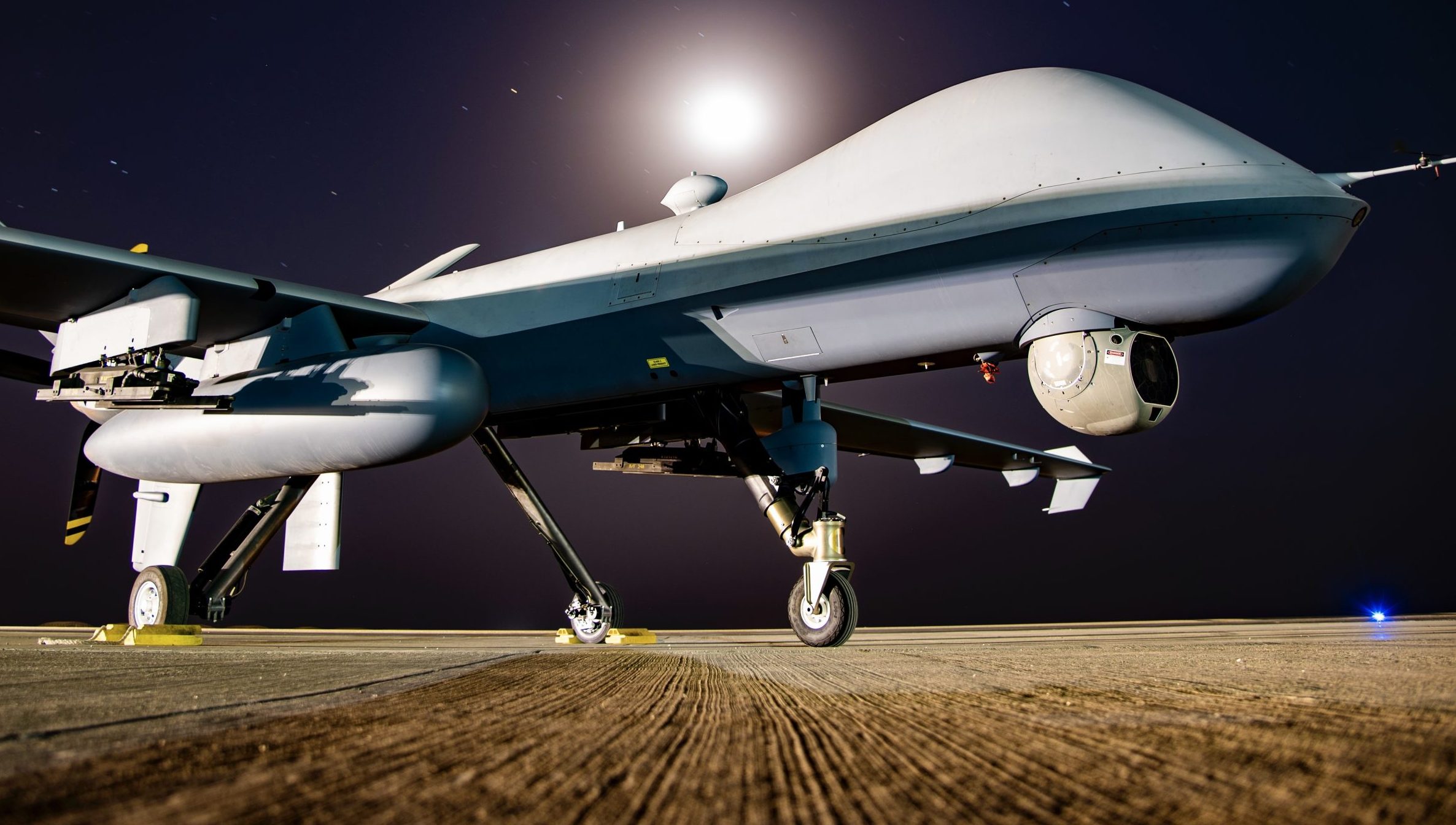 Image: Long exposure photo of an MQ-9 Reaper on the 361 Expeditionary Attack Squadron flight line at an undisclosed location, August 6, 2022. The MQ-9 is an unmanned aircraft capable of remote controlled or autonomous flight. The 361 EAS operates them in support of Operation Inherent Resolve. (US Air Force photo by: Tech. Sgt. Jim Bentley)