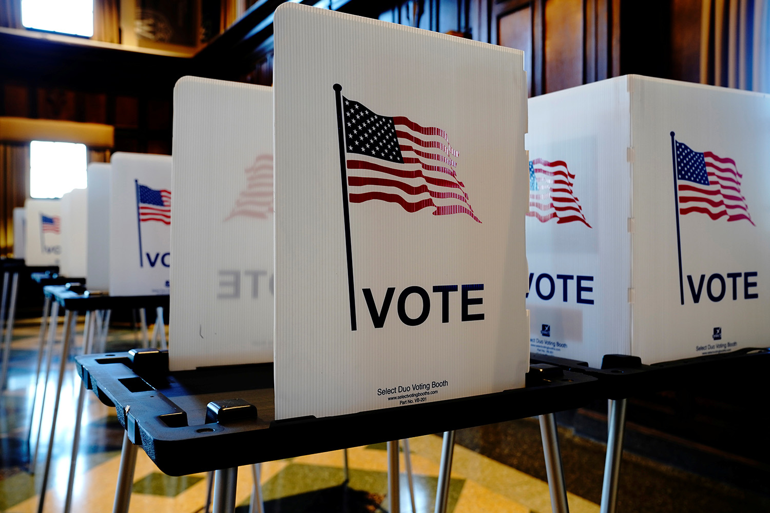 Image: Unused privacy booths are seen at a voting site in Tripp Commons inside the Memorial Union building on the University of Wisconsin-Madison campus on Election Day in Madison, Dane County, Wisconsin, U.S. November 3, 2020. REUTERS/Bing Guan