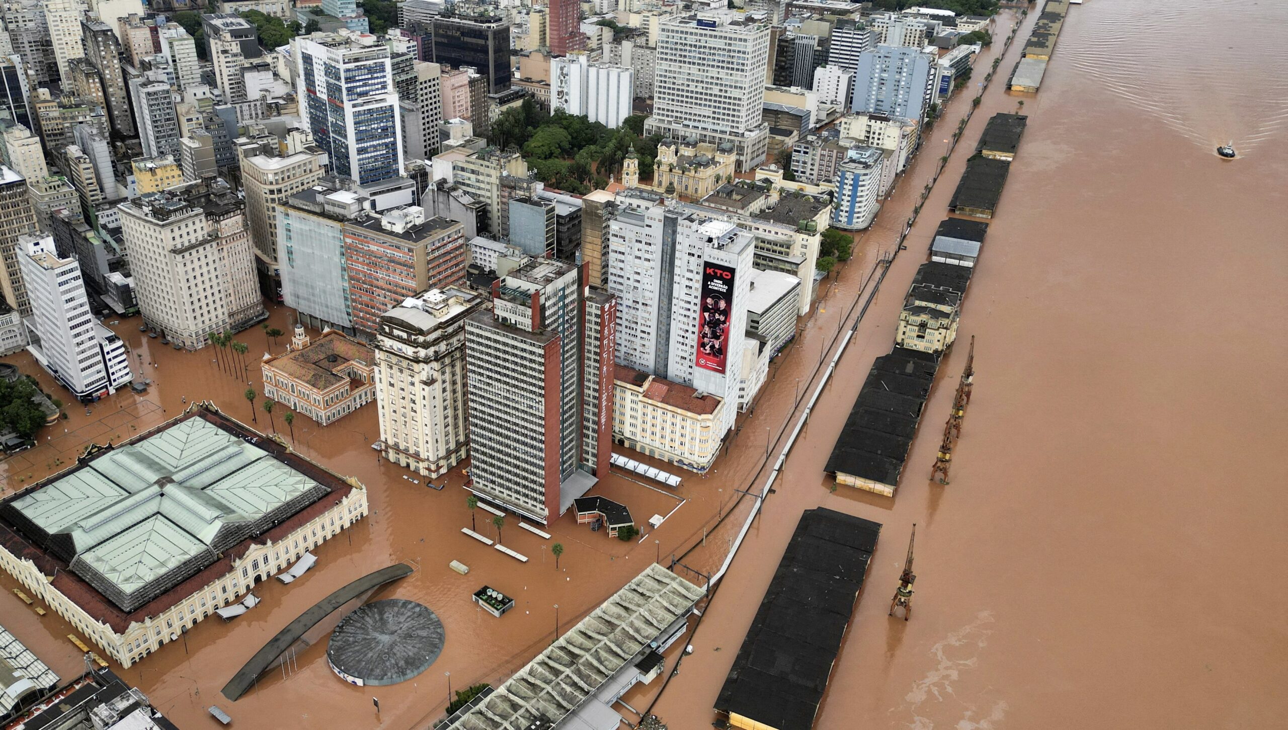 Image: A drone view shows a flooded city center after people were evacuated in Porto Alegre, in Rio Grande do Sul state, Brazil, May 5, 2024. REUTERS/Renan Mattos