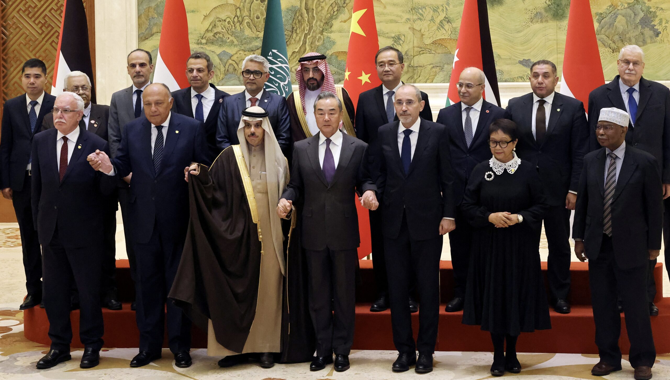 Image: Chinese Foreign Minister Wang Yi attends a family photo session with Saudi Foreign Minister Prince Faisal bin Farhan Al Saud, Jordanian Deputy Prime Minister and Foreign Minister Ayman Safadi, Egyptian Foreign Minister Sameh Shoukry, Indonesian Foreign Minister Retno Marsudi, Palestinian Foreign Minister Riyad Al-Maliki and Organisation of Islamic Cooperation (OIC) Secretary-General Hissein Brahim Taha at the Diaoyutai State Guesthouse in Beijing, China November 20, 2023. REUTERS/Florence Lo/Pool
