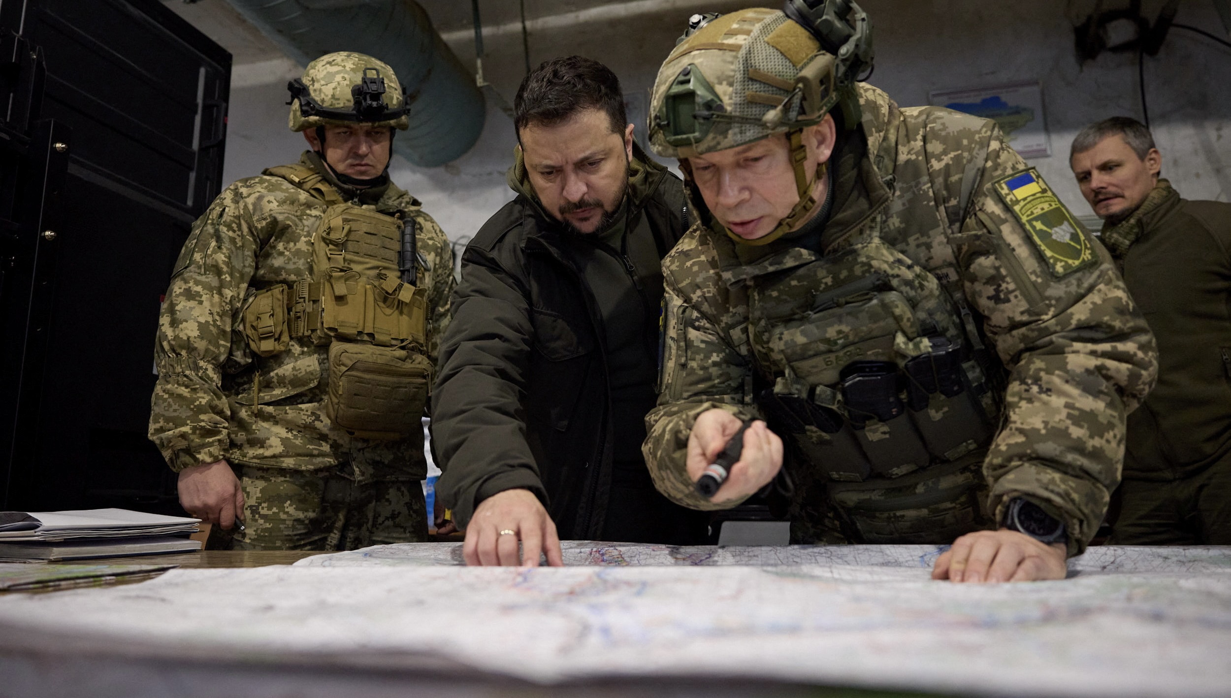 Image: Ukraine's President Volodymyr Zelenskiy listens to Commander of the Ground Forces colonel general Oleksandr Syrskyi as he visits a position of Ukrainian servicemen in the town of Kupiansk, amid Russia's attack on Ukraine, in Kharkiv region, Ukraine November 30, 2023. Ukrainian Presidential Press Service/Handout via REUTERS