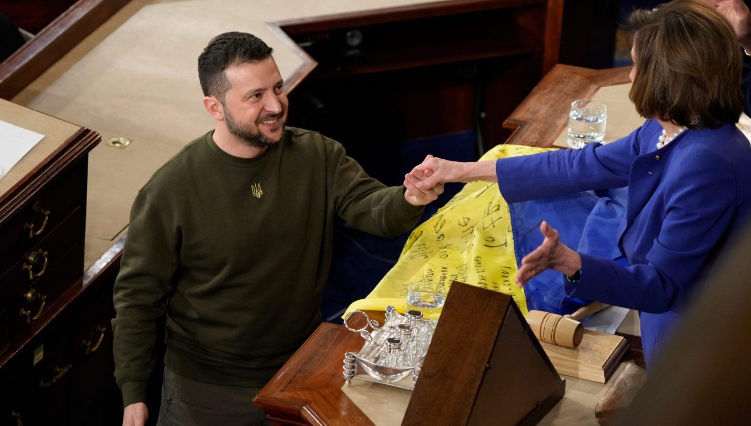 Image: President Volodymyr Zelenskyy of Ukraine with Speaker of the House Nancy Pelosi (D-Calif.) after addressing a joint meeting of Congress at the Capitol on December 21, 2022. The Ukrainian President visited Washington to meet with Biden and US lawmakers during his first trip outside his country since Russia began its violent invasion of Ukraine in February.News President Volodymry Zelenskyy Of Ukraine Addresses Congress During Visit To Us