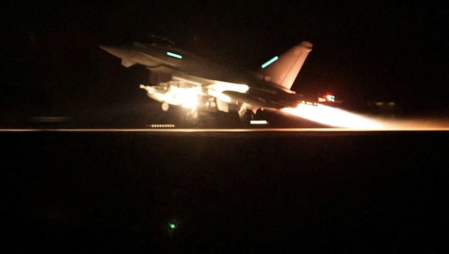 Image: An RAF Typhoon aircraft takes off to join the U.S.-led coalition from RAF Akrotiri to conduct air strikes against military targets in Yemen, aimed at the Iran-backed Houthi militia that has been targeting international shipping in the Red Sea, in Cyprus, in this handout picture released on January 12, 2024. Sgt Lee Goddard/UK MOD/Handout via REUTERS THIS IMAGE HAS BEEN SUPPLIED BY A THIRD PARTY NO RESALES. NO ARCHIVES TPX IMAGES OF THE DAY