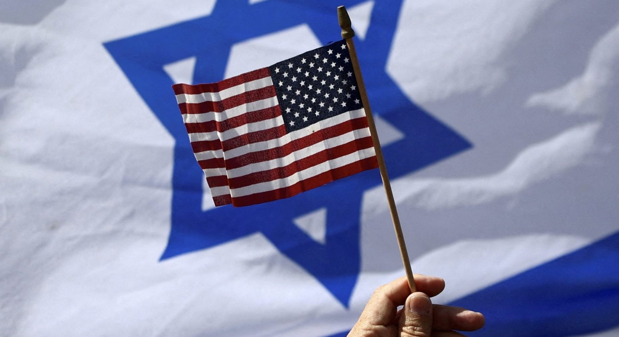 Image: A view of a US flag and an Israeli flag held up by people during a demonstration to show support for US President Joe Biden, for not inviting Israeli Prime Minister Benjamin Netanyahu to the White House, in front of the US Consulate in Tel Aviv, Israel, March 30, 2023. REUTERS/Ronen Zvulun